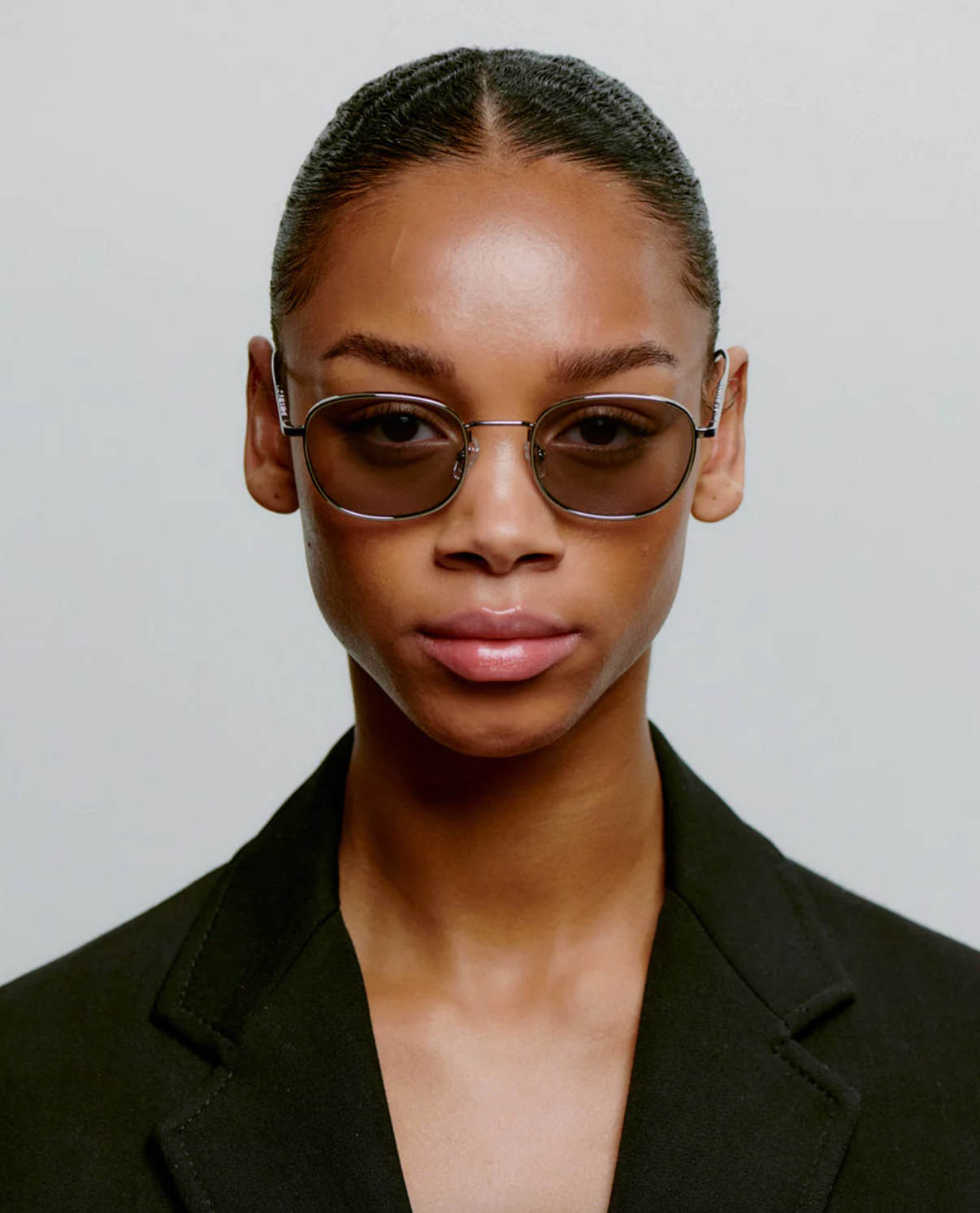 BESKRIVELSE: Inspirert av 60-talls Hollywood med firkantede linser i en slank metallramme som rammer inn ansiktet på en særegen, men tidløs måte. Klassisk filmstjernestemning.
