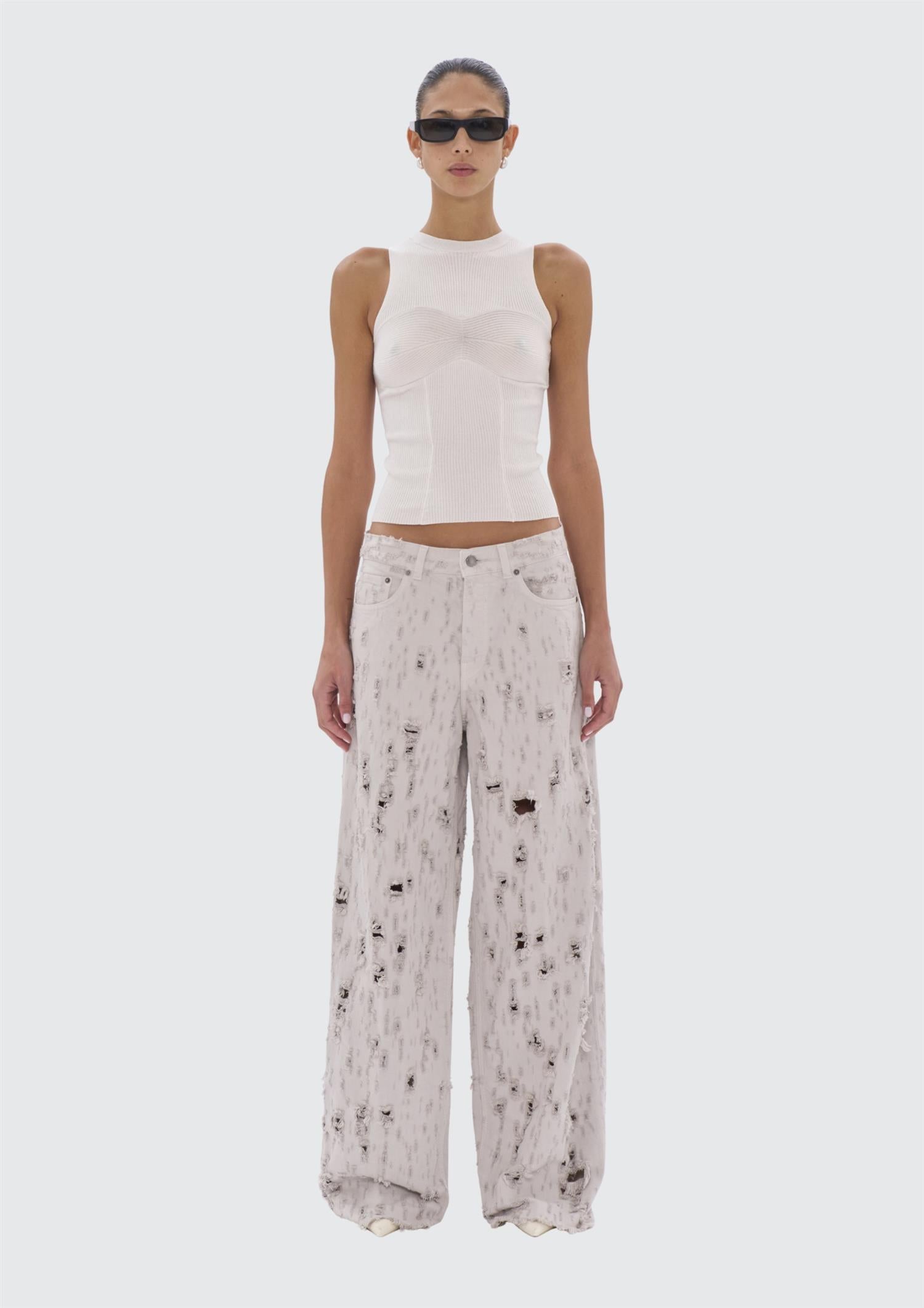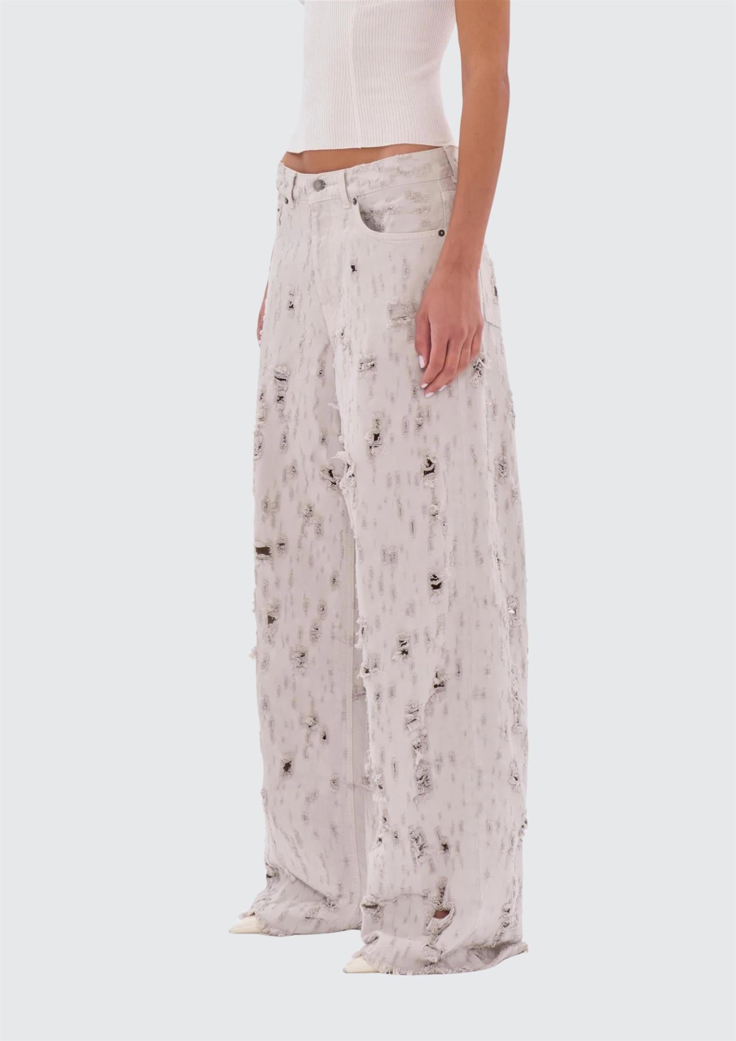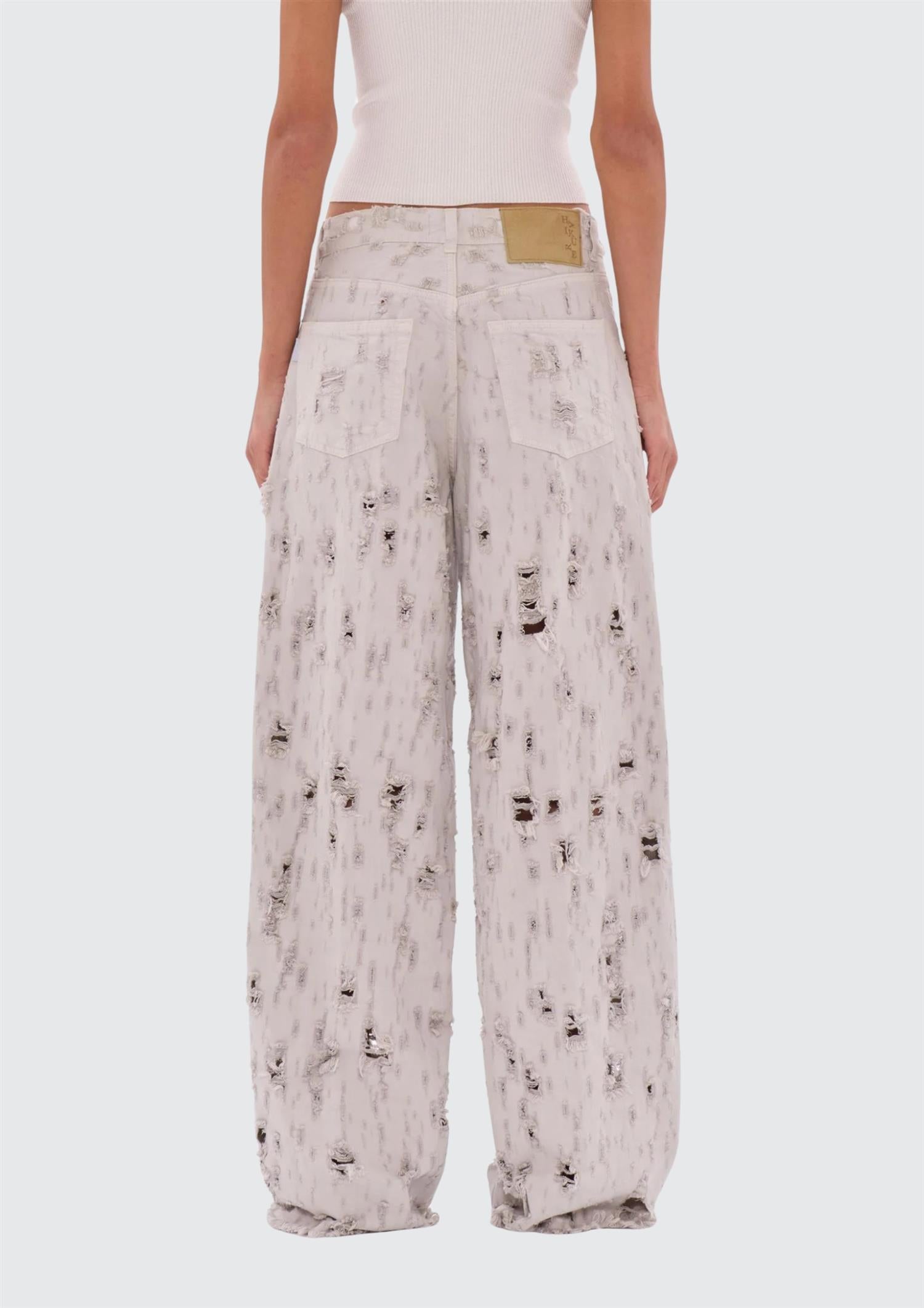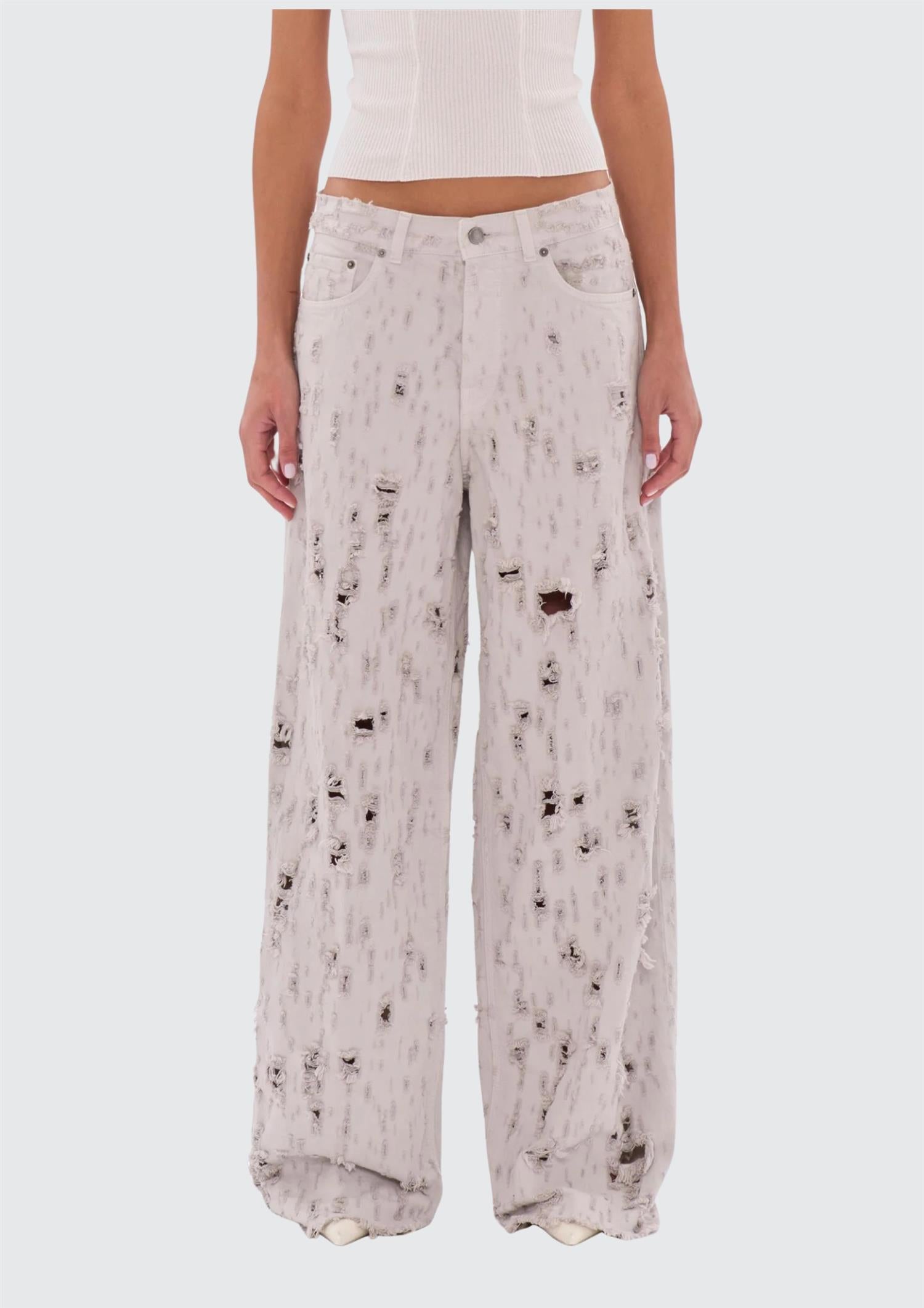BESKRIVELSE: Oppgrader denimgarderoben din med «Bethany Destroy»-jeansen fra Haikure. Den er designet med middels høy midje og ekstra vide ben for en avslappet silhuett. Den kunstneriske slitasjen gir et gjennomført, effortless uttrykk med en innarbeidet følelse. Style den med en enkel tanktop eller t-skjorte for å la teksturen komme til sin rett.