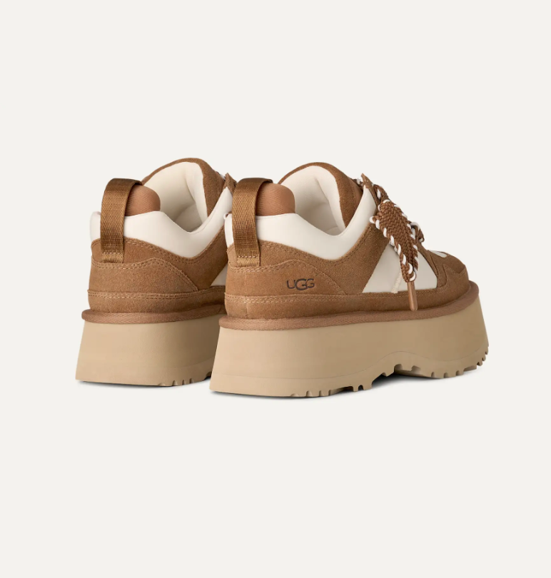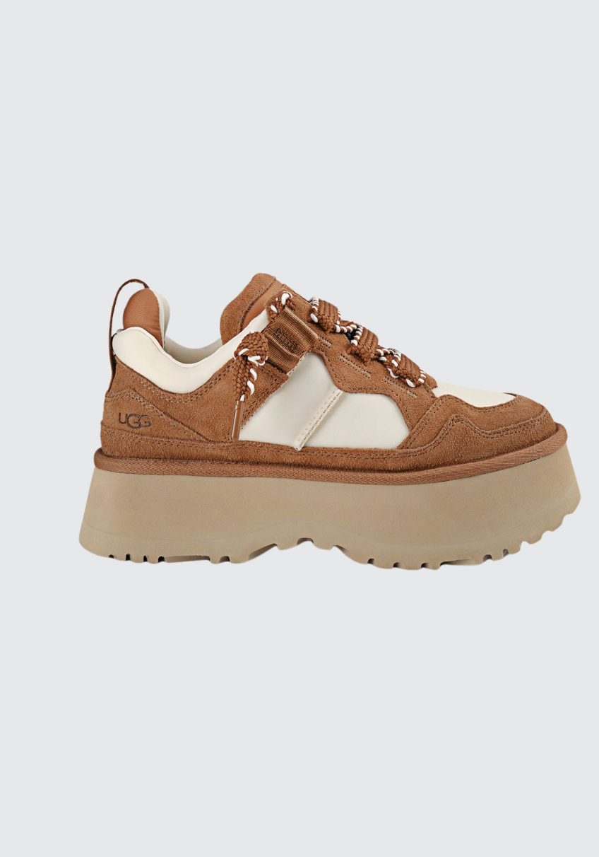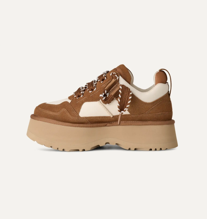Beskrivelse: Vår Astromel er en platåversjon av vår Lowmel-sneaker. Designet med overdel i semsket skinn, nylon og resirkulert tekstil, gir Astromel klassiske sneakers-elementer en ny vri – noe helt nytt, men likevel umiskjennelig UGG®. Twin Seam-detaljene, den forhøyede 5 cm platåsålen og den polstrede EVA-innersålen gir både utseendet og følelsen av UGG® – fra innsiden og ut.