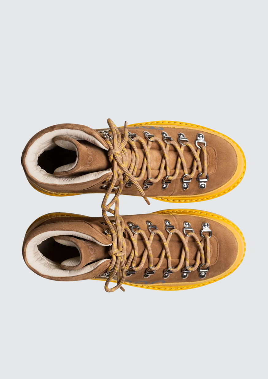 BESKRIVELSE: Vidda er Mono sin nye statement-boot, laget for dem som går sin egen vei – uten å gå på kompromiss med komfort eller kvalitet. Inspirert av klassiske fjellstøvler får dette designet en moderne vri med en rik semsket overdel og en dristig gul gummisåle som vekker oppsikt. Perfekt både til byturer og helgeutflukter i fjellet.
