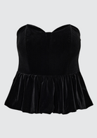 BESKRIVELSE: Vessi er en elegant festtopp i myk velour fra Co'couture. Toppen er stroppeløs og har en vakker, hjerteformet utringning som fremhever silhuetten på en feminin måte. Nederst har den en dekorativ kappe som gir et eksklusivt og sofistikert uttrykk – perfekt til festlige anledninger.