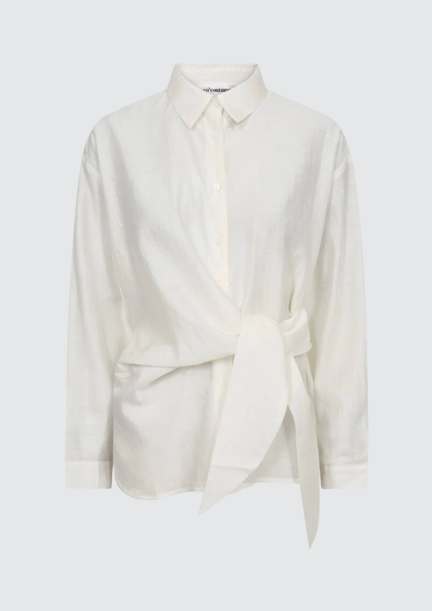 BESKRIVELSE: Denne elegante hvite skjorten fra Co'Couture kombinerer klassisk design med moderne detaljer. Skjorten har klassisk krage, lange ermer med mansjetter og knappelukking foran. Det justerbare knytebåndet i midjen fremhever silhuetten og gir skjorten en feminin og flatterende form.