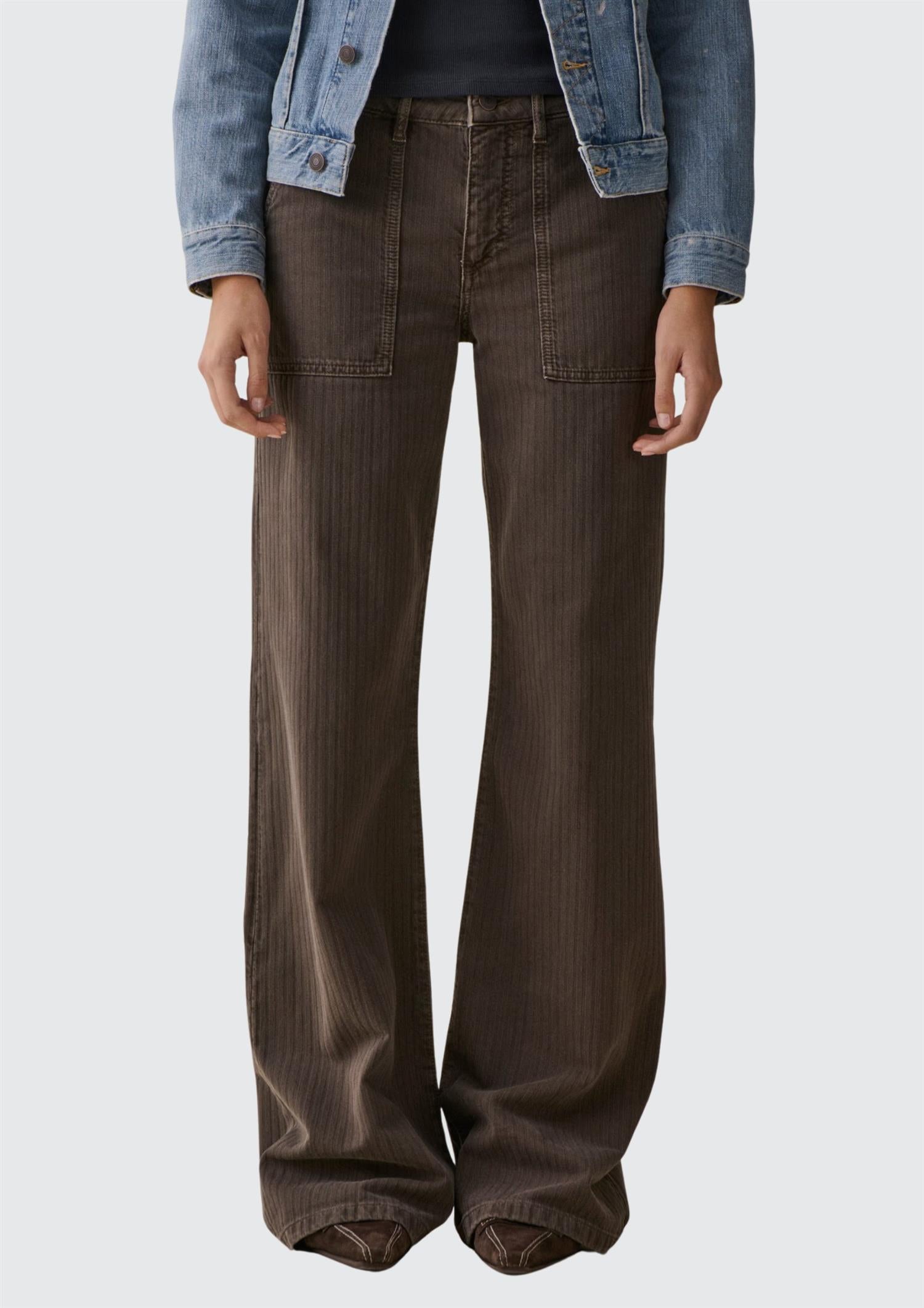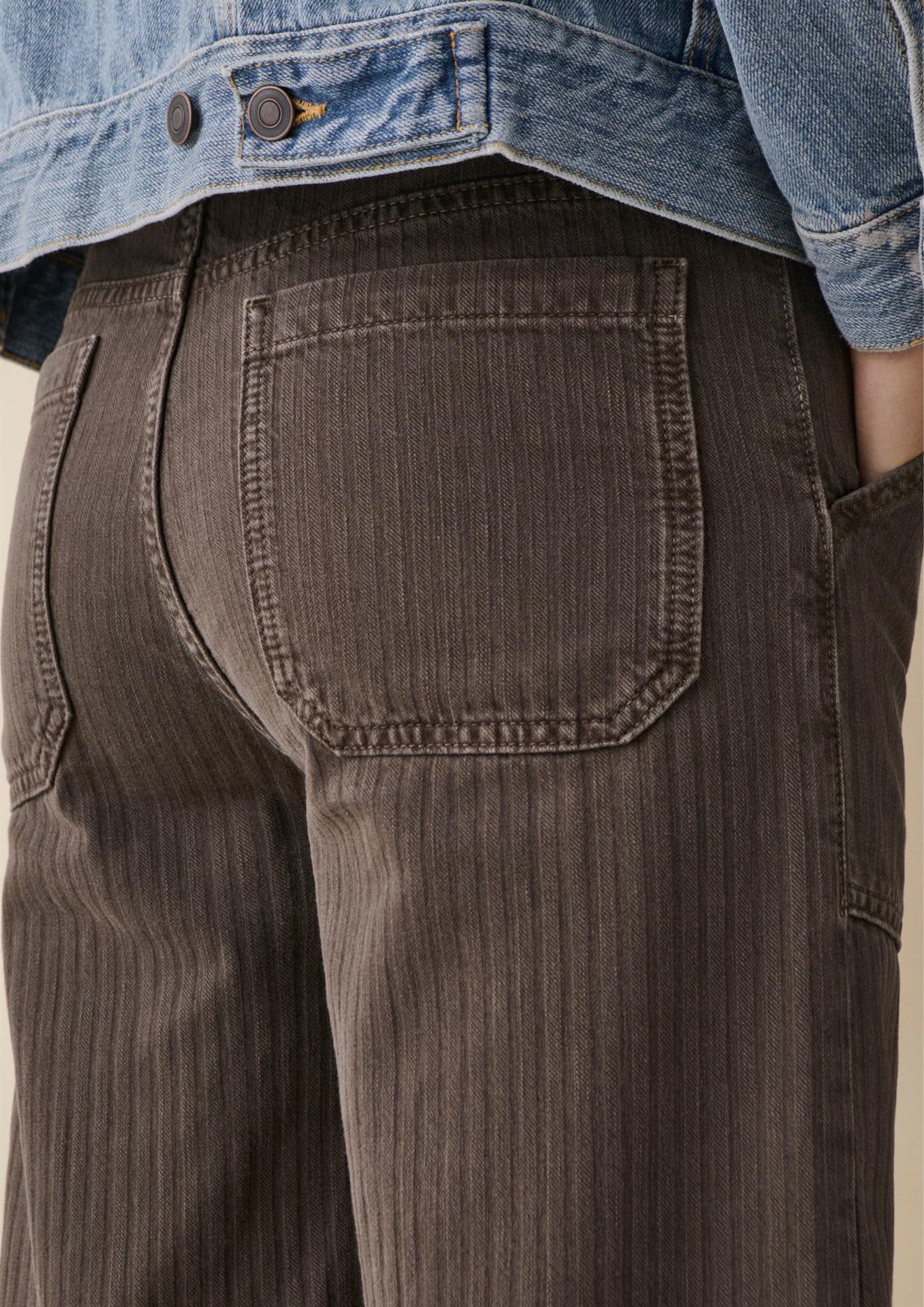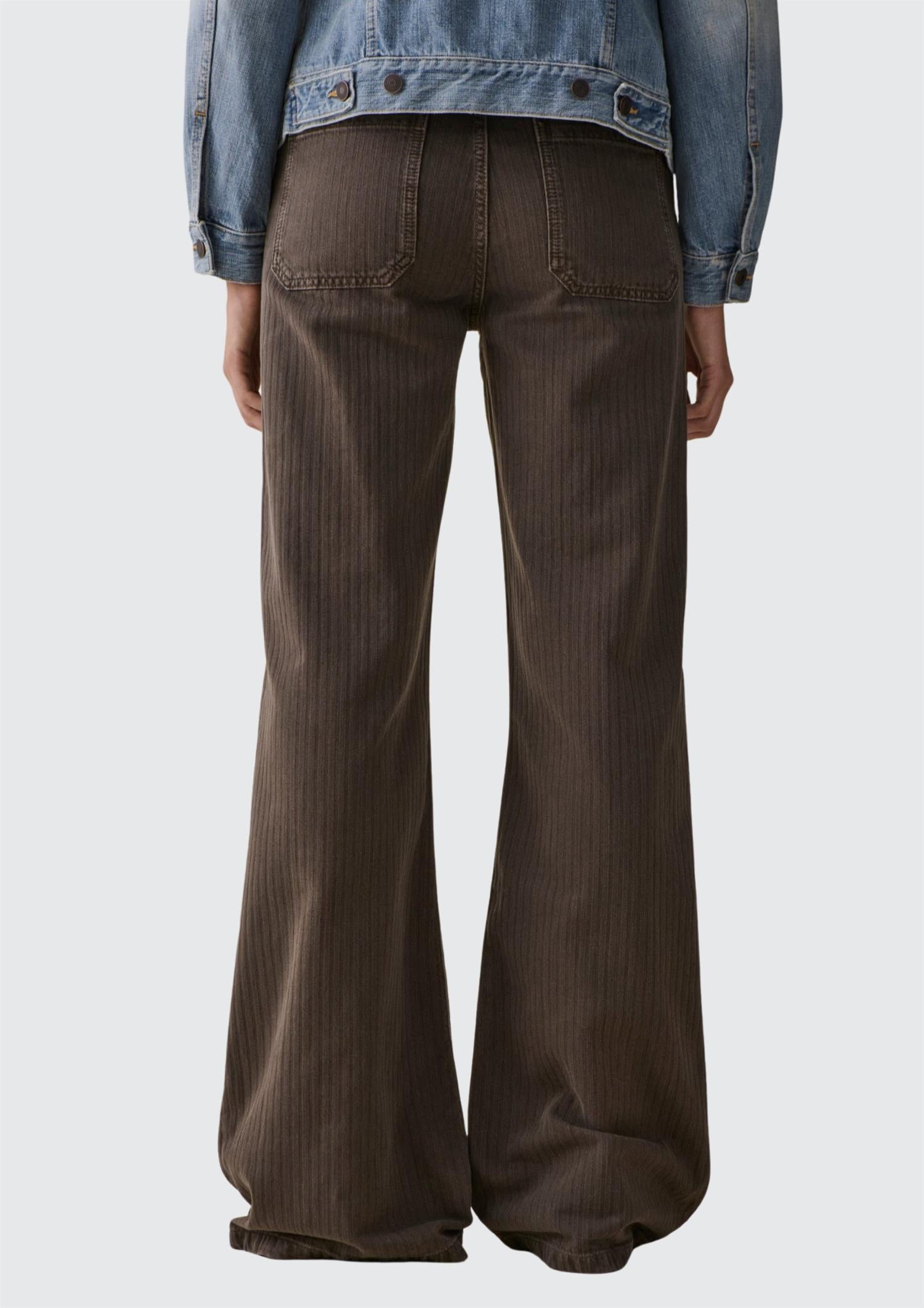 Beskrivelse: Guell' er en snekker-inspirert flare jeans med raffinerte arbeidstøydetaljer. Den er laget av myk denim, har en normal høyde på livet, løse bein, lommer foran og bak og en karakteristisk hammerløkke. Denne stilen blander sømløst funksjonalitet med avslappet eleganse, og tilbyr et raffinert og allsidig tillegg til garderoben din.