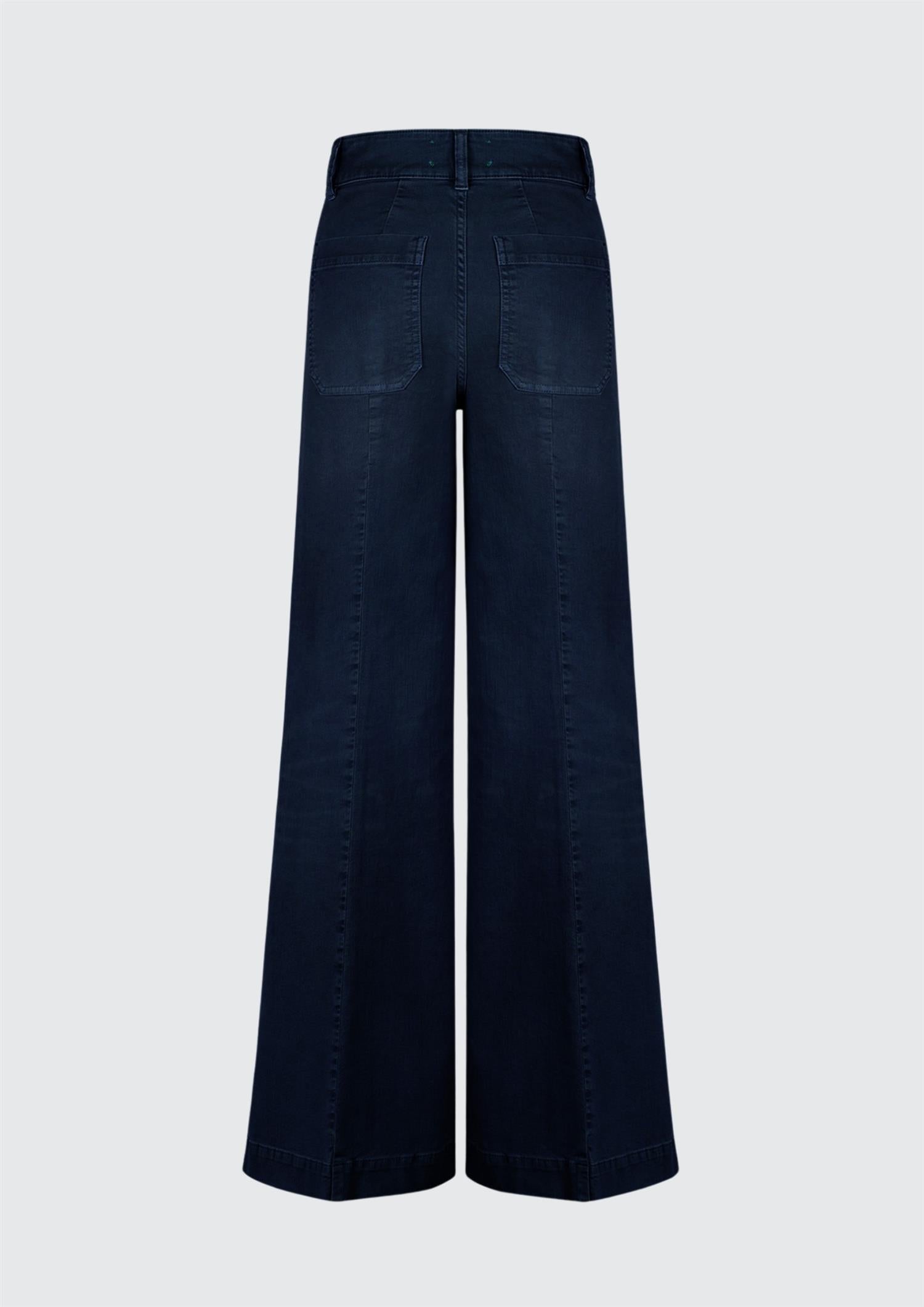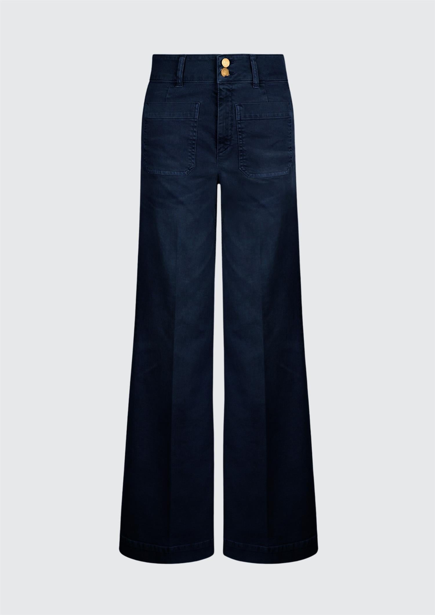 BESKRIVELSE: En helt rå wide-leg jeans fra Seafarer i en klassisk mørk blå vask. God høyde på livet, men to lommer i front. Buksen har sømmer bak som gjør at man får ekstra lange ben.