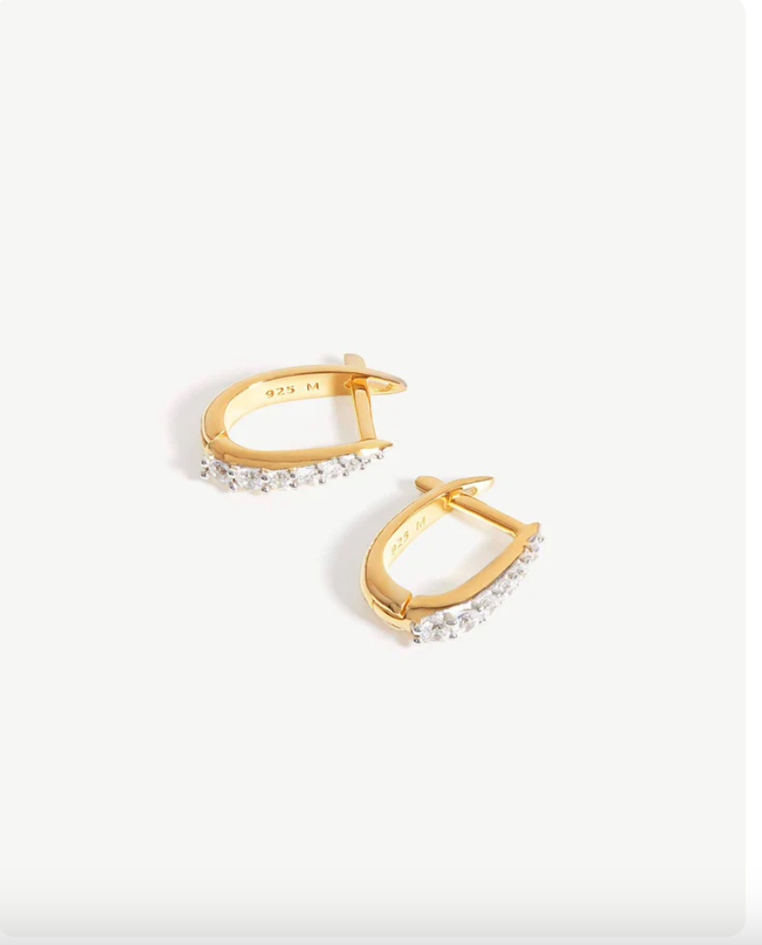 BESKRIVELSE: Oppgrader smykkene dine med Missoma sin signatur-Claw-design. Disse huggies-øredobbene er pyntet med kubisk zirkonia og har en enkel hengslet lukking. Bruk dem alene for et mer delikat utseende, eller kombiner dem med andre mini-ringer og øredobber. Lag på lag for mindre når de kjøpes som et sett med Claw Pave Huggies-øreringer.