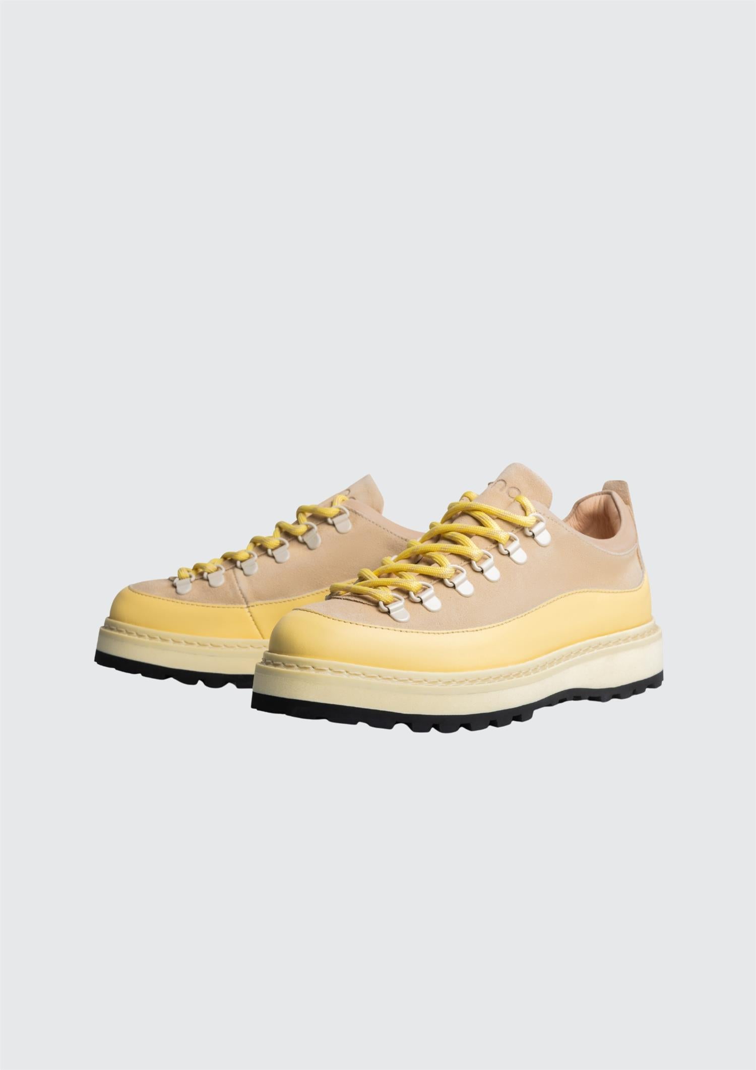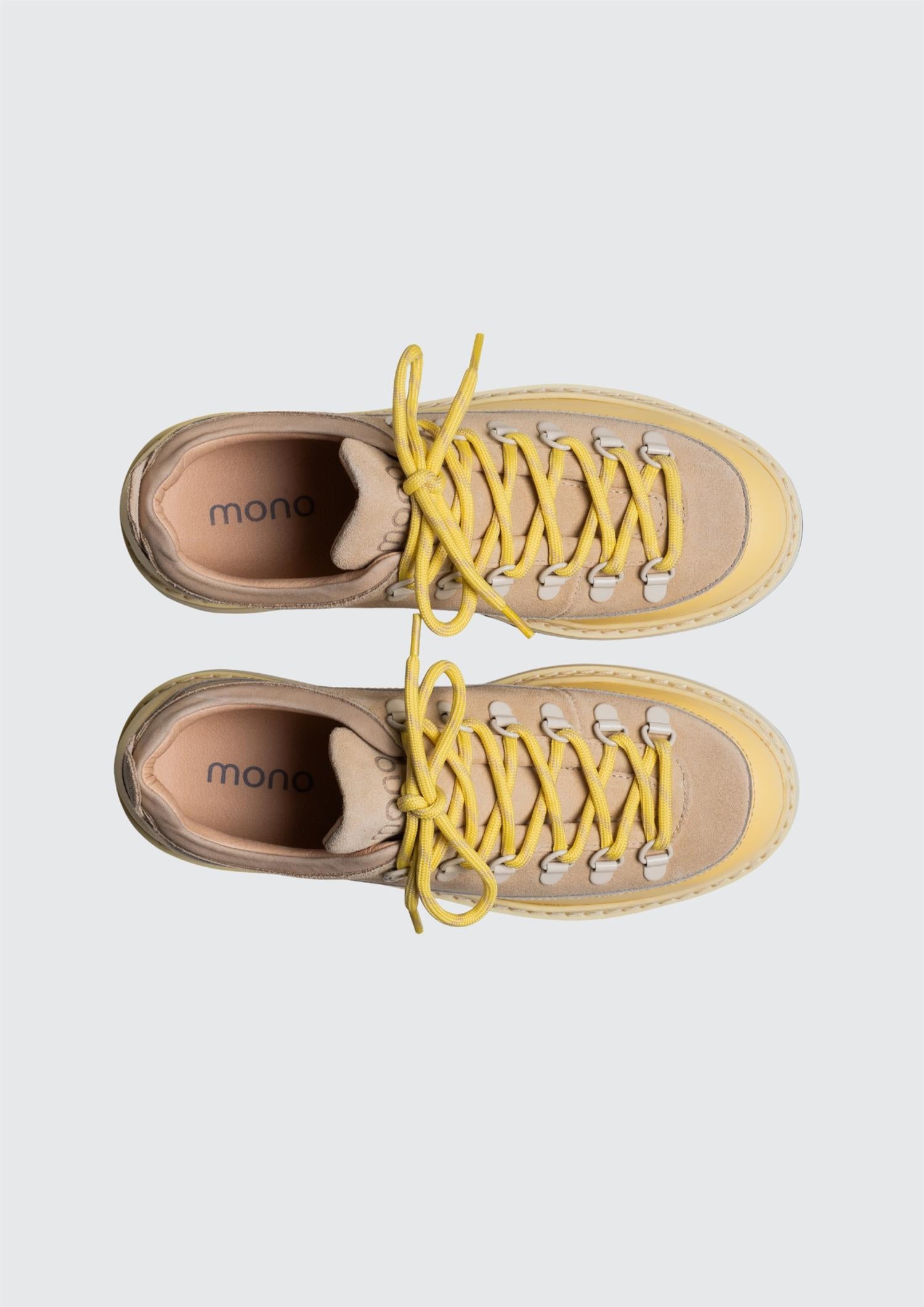 BESKRIVELSE: Dette er en av de nyeste modellene fra det norske merket Mono, som er en krysning mellom en kul sneakers og en komfortabel fjellsko. Skoen er kombinert med forskjellig skinn fra førsteklasses italienske materialer. Skoene er håndlaget i Portugal og designet i Oslo.
