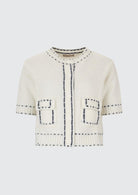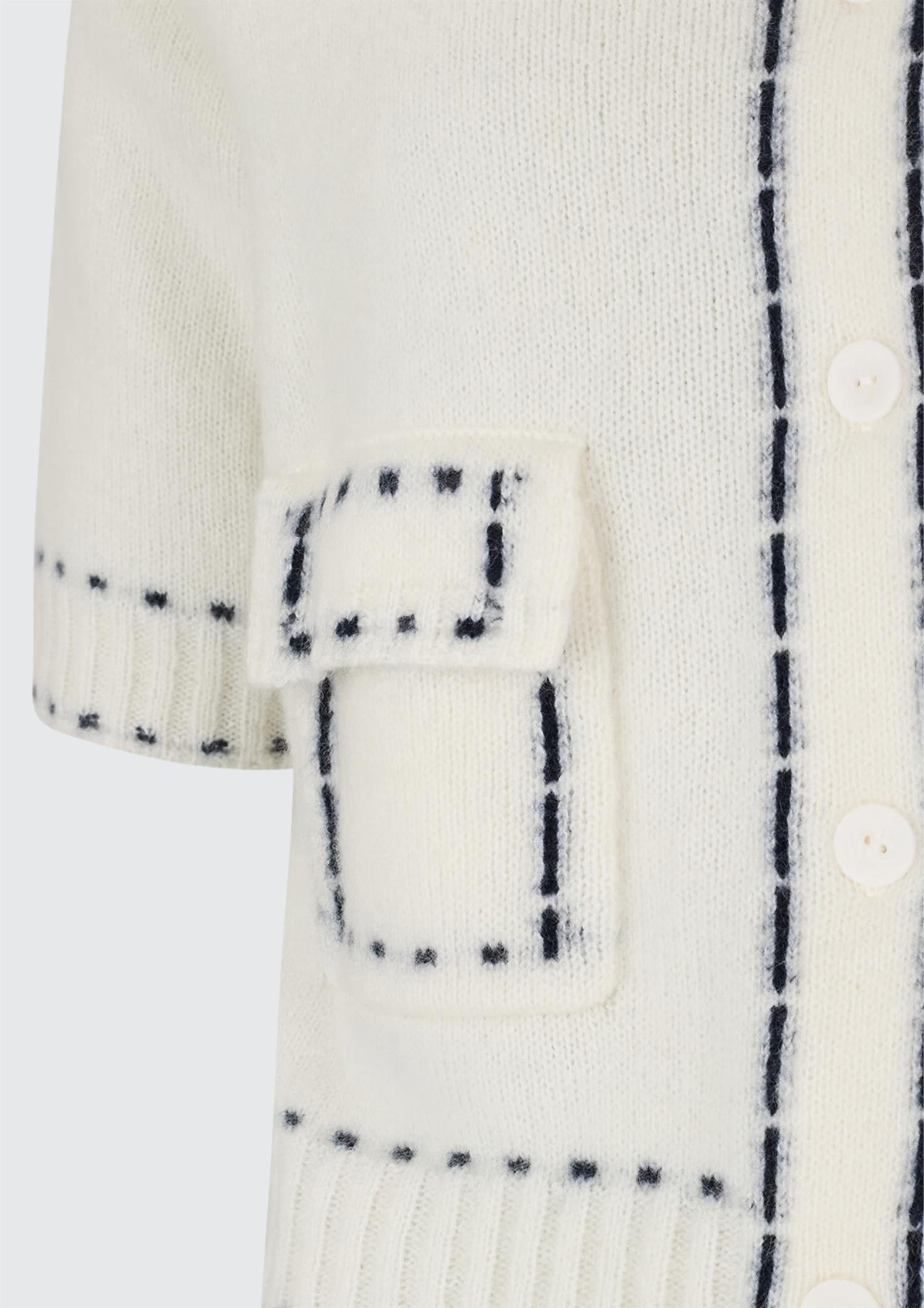 BESKRIVELSE: Utsøkt myk, kort cardigan fra Hemisphere i kasjmirblanding med en lett og raffinert strikk. Rund hals og synlige sømmer gir et gjennomført uttrykk, mens ribbestrikkede mansjetter og kant tilfører struktur. Perfekt over en silkeskjorte eller en enkel topp. Klaffelommene gir en funksjonell og elegant detalj som passer fint til både vide bukser og rette skjørt.