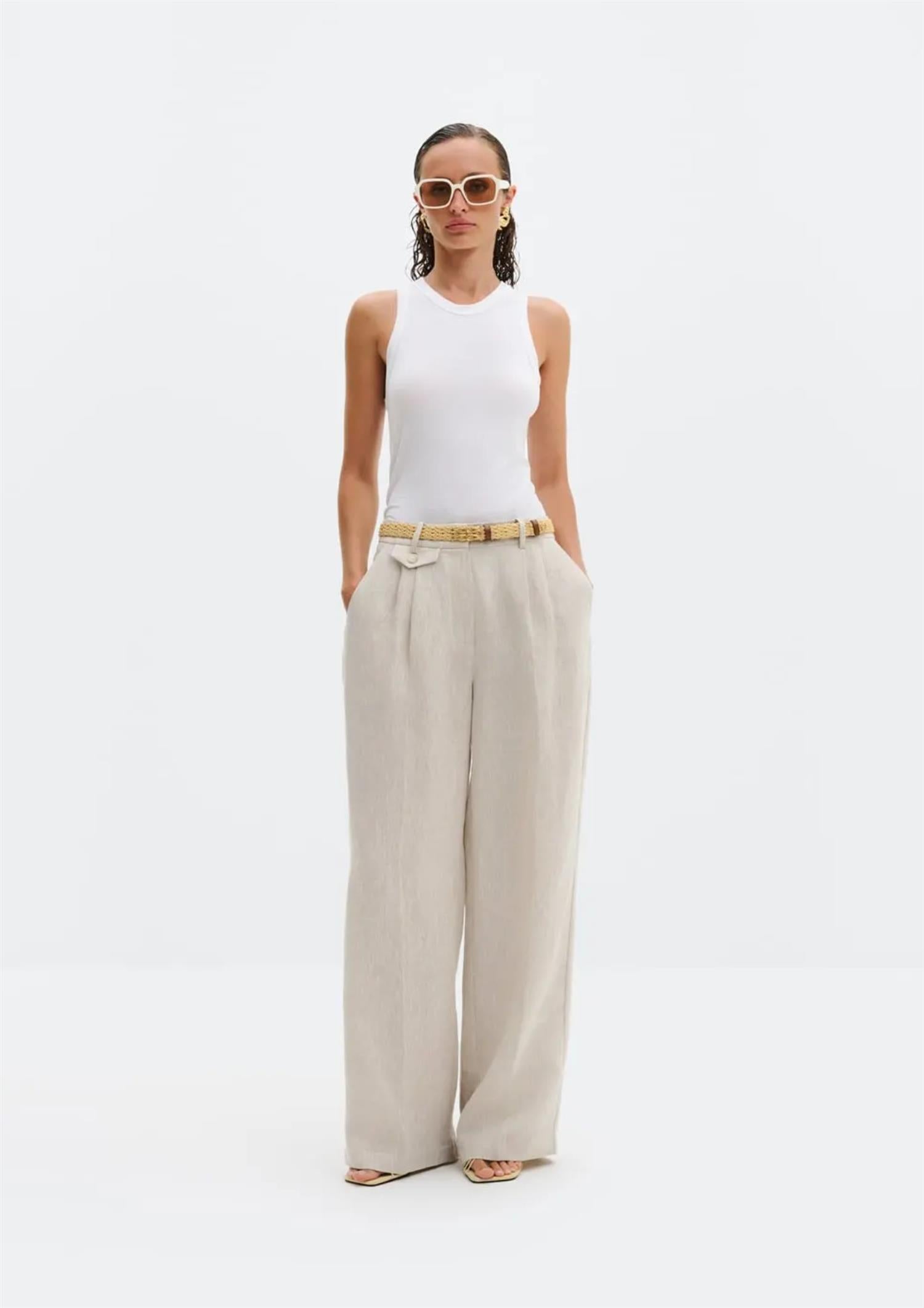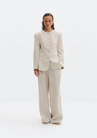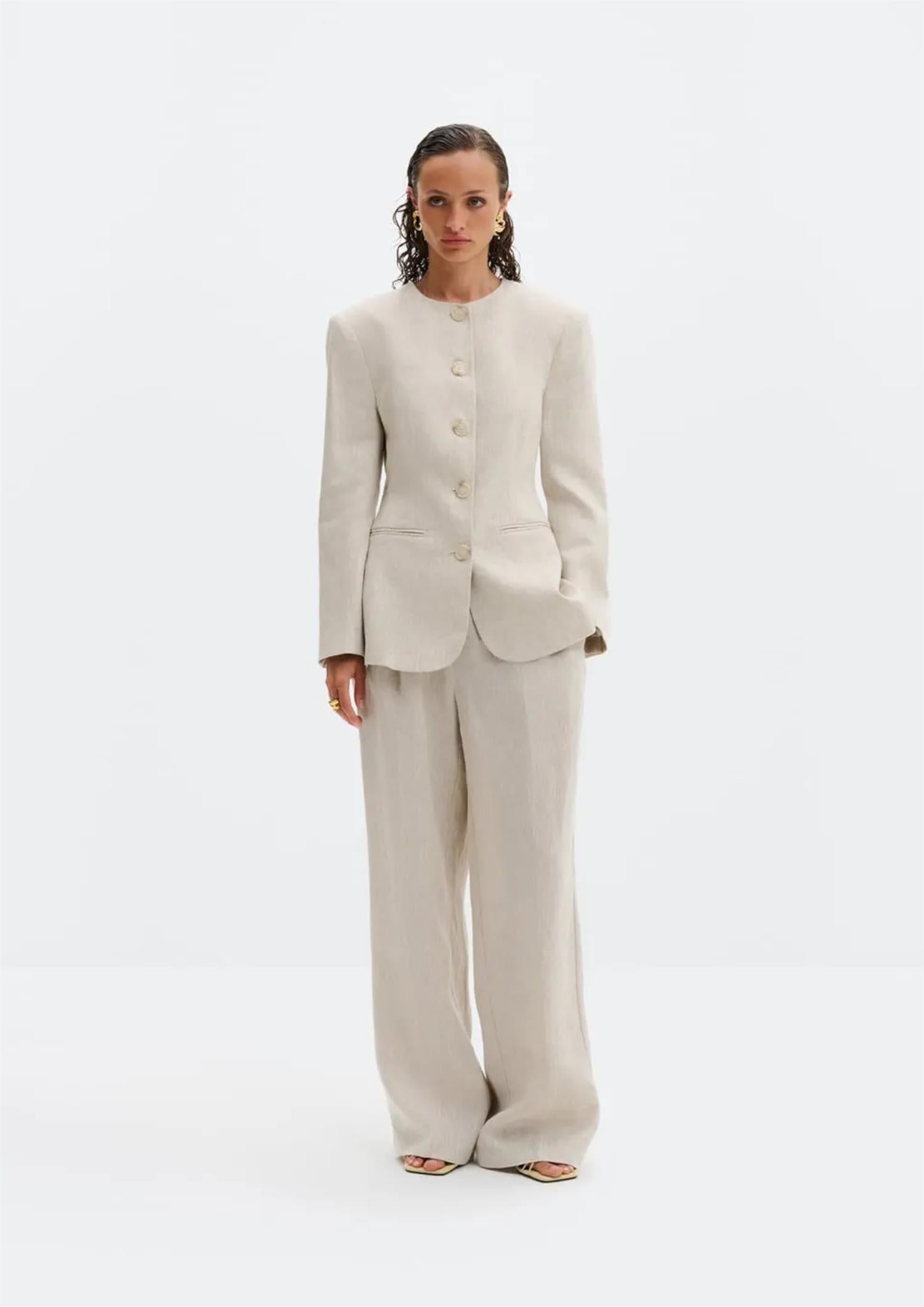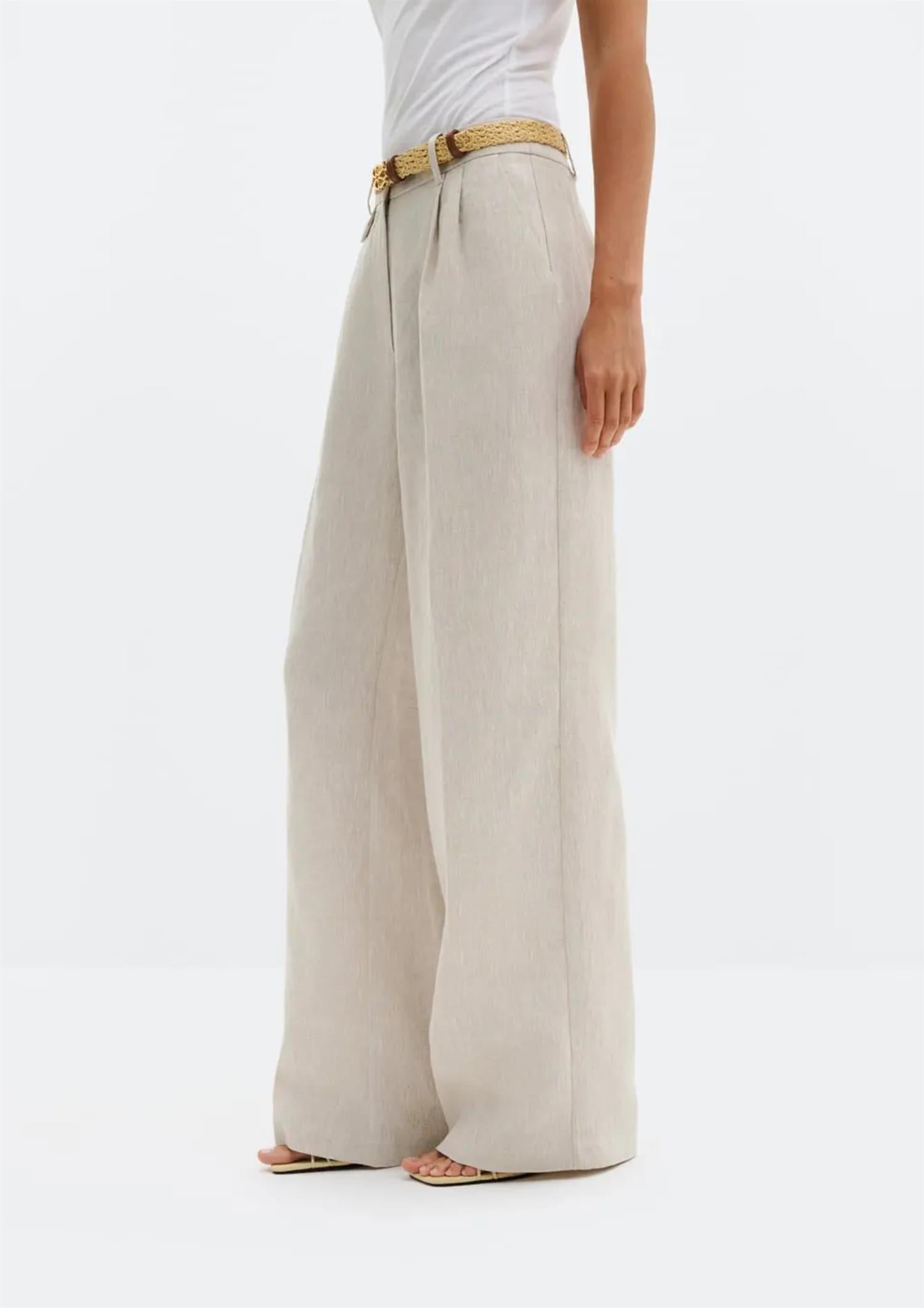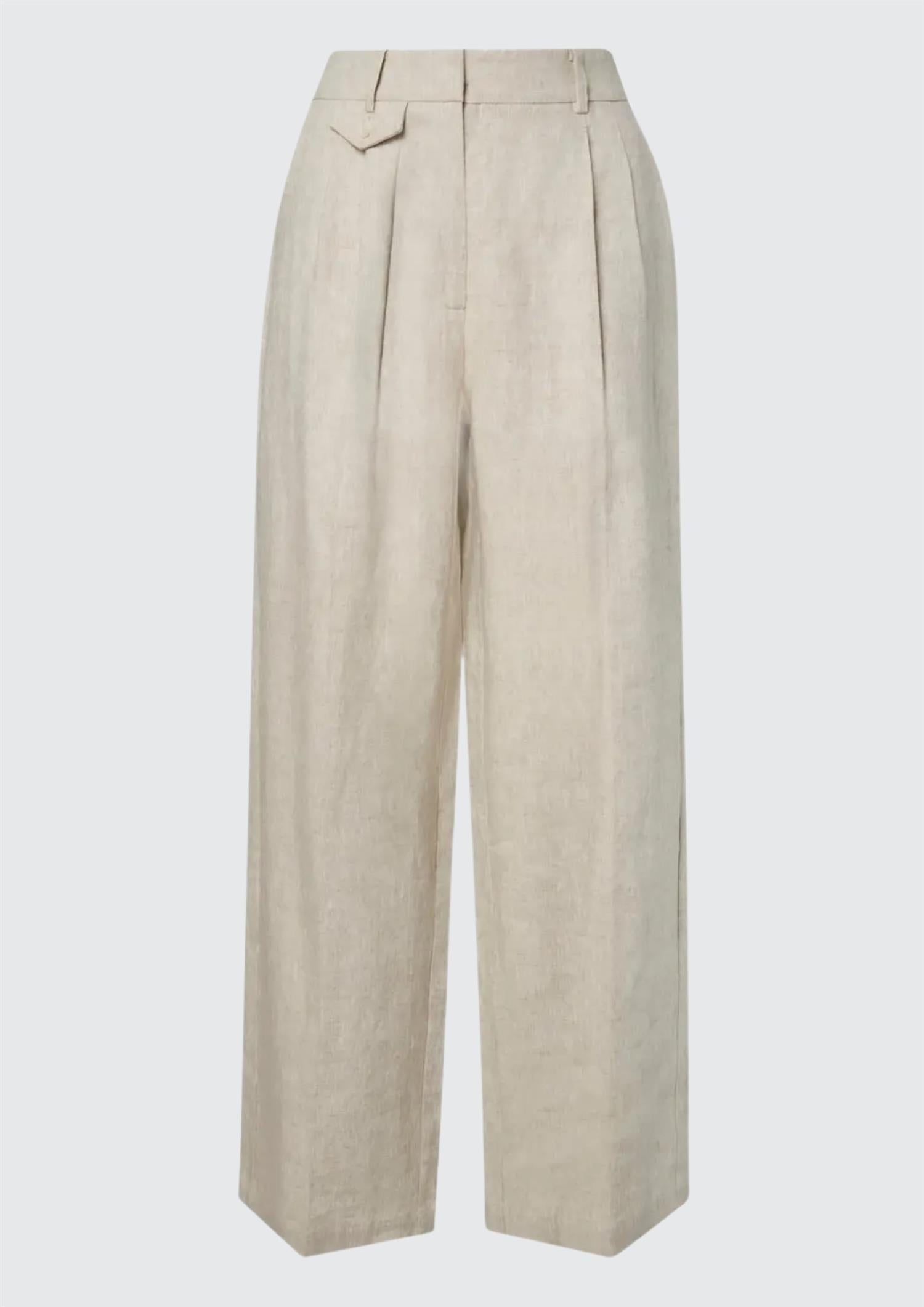 BESKRIVELSE: Dressbukse med høyt liv, i lin med skreddersydd uttrykk og avslappede, vide ben. Perfekt å style med en enkel tank top eller matchende blazer.