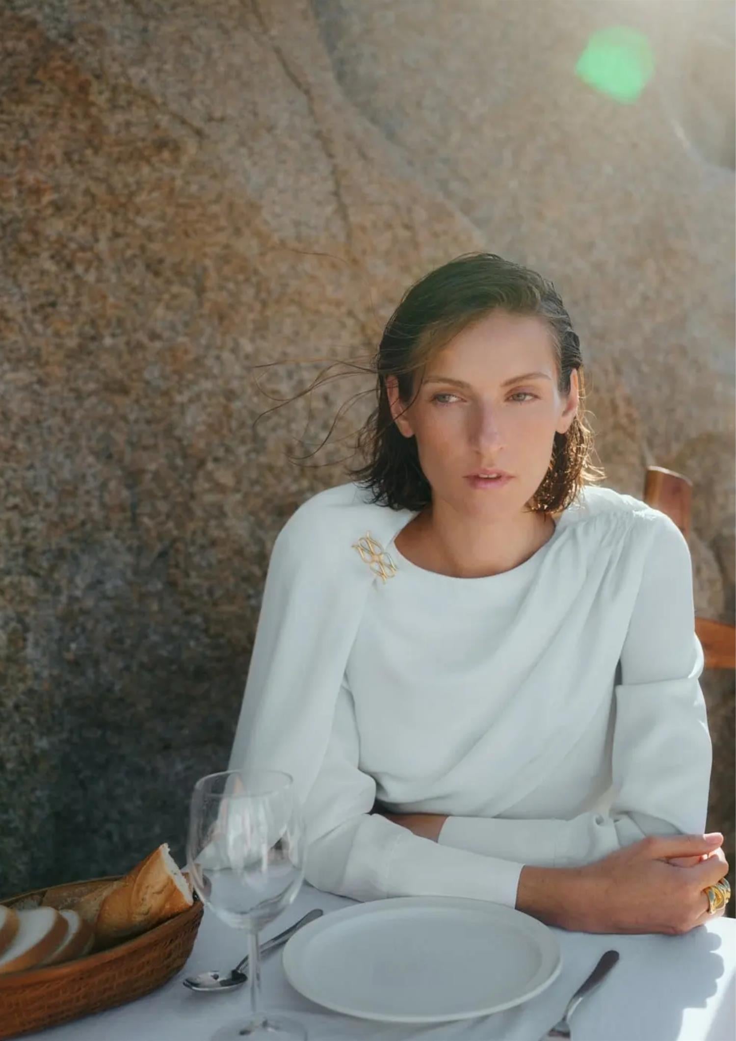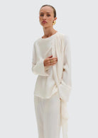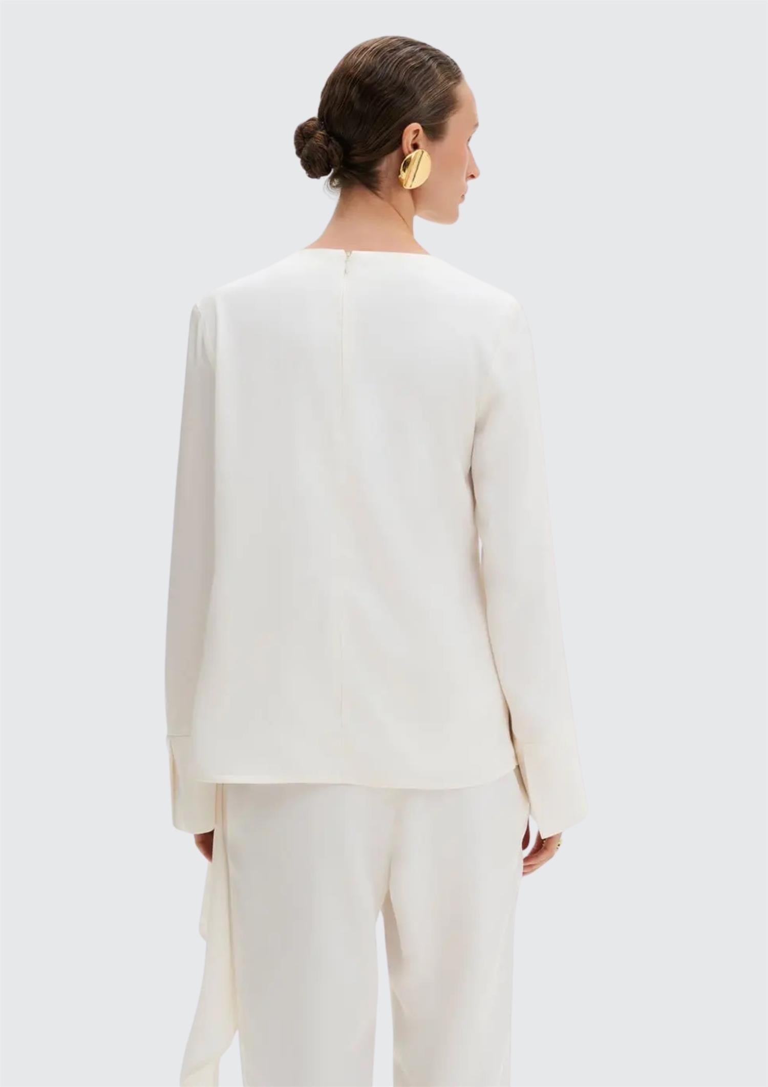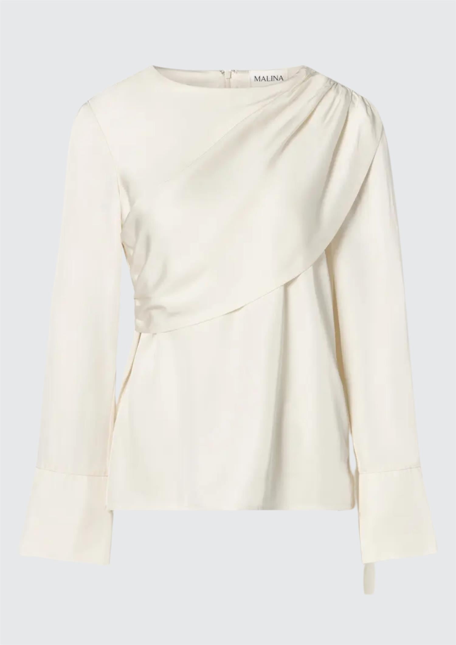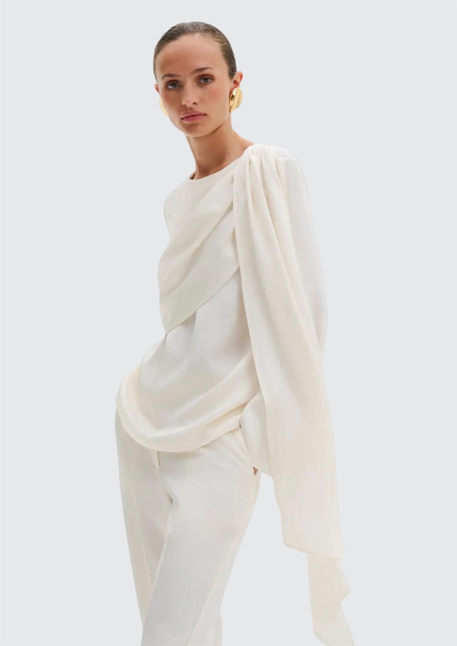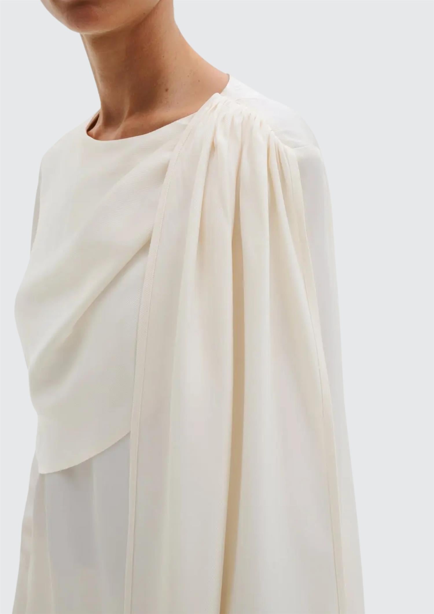 BESKRIVESLE: Bluse med lange ermer, drapert front og kappe-detalj.