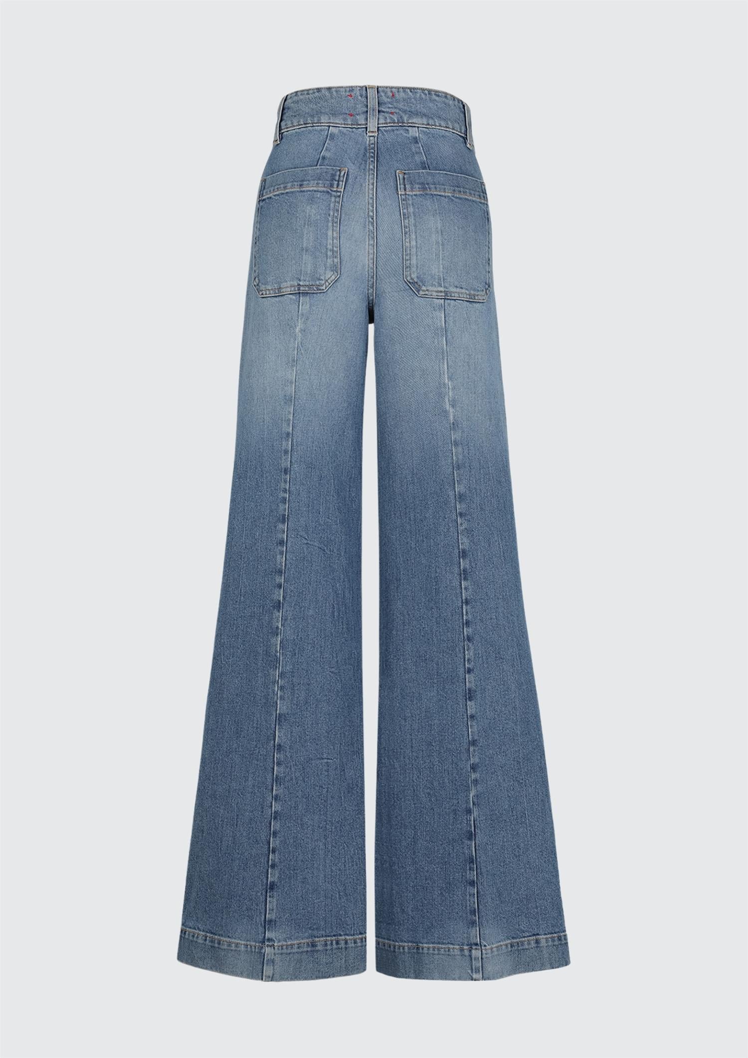BESKRIVELSE: En helt rå wide-leg jeans fra Seafarer i en klassisk hvit vask. God høyde på livet, men to lommer i front. Buksen har sømmer bak som gjør at man får ekstra lange ben.