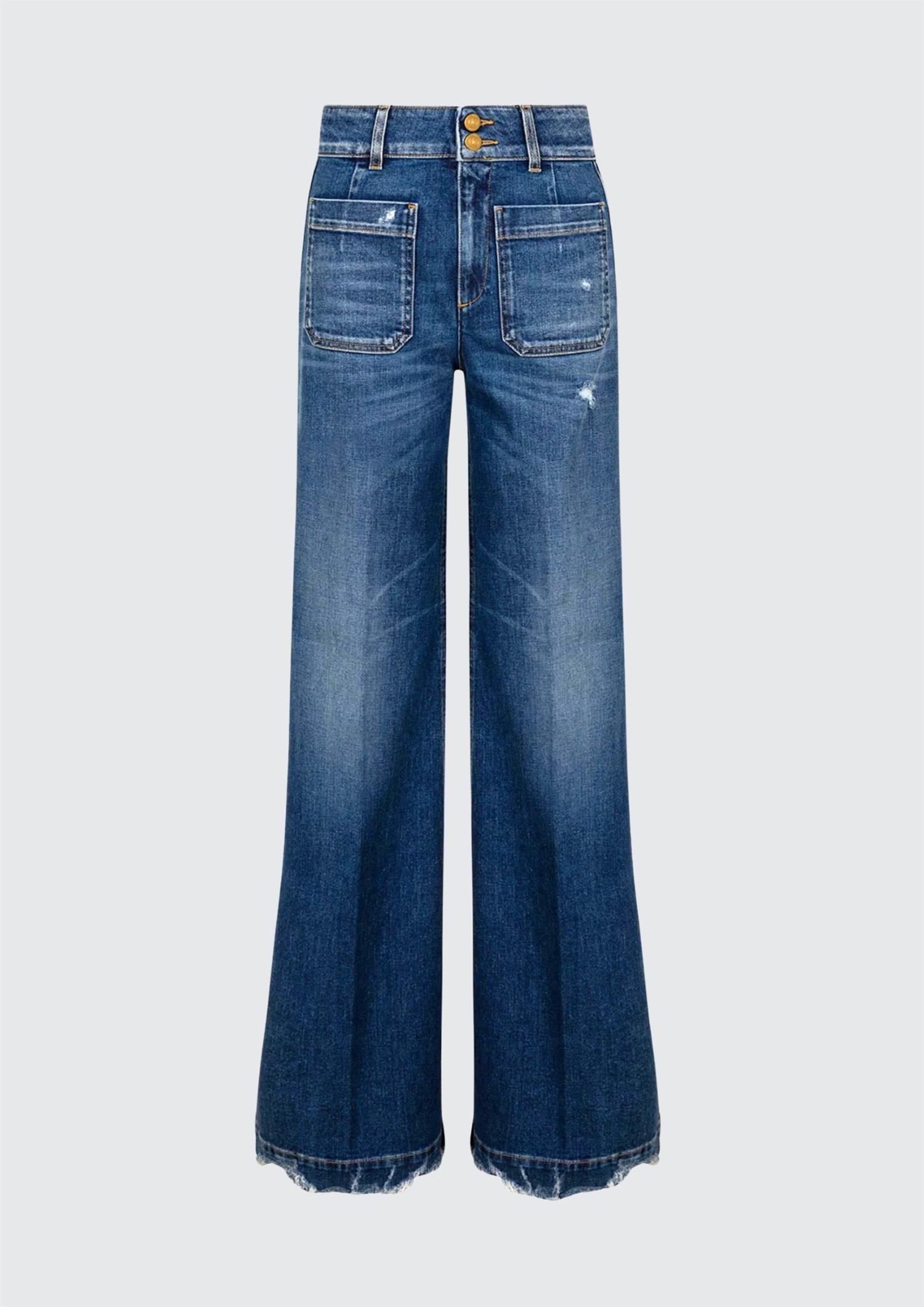 BESKRIVELSE: Jane Jeans er den perfekte wide-leg jeansen, med det lille ekstra. Her får du lomme- og knappedetaljer som gjør buksen litt ekstra unik, og med de slitte detaljene gjør den litte røffere og kulere enn de klassiske Jane jeansene. Perfekt til å style enkelt med en enkel topp, eller til å pynte opp med en blazer eller kul jakke for en litt mer edgy look.