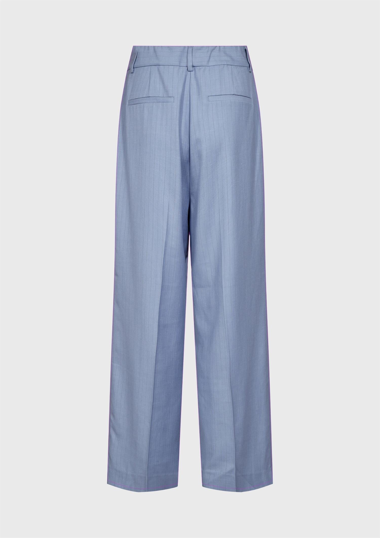 BESKRIVELSE: Kiana Pin Pleat Pant i en delikat lys blå farge er et stilrent valg for enhver garderobe. Disse buksene kombinerer komfort med et klassisk design.