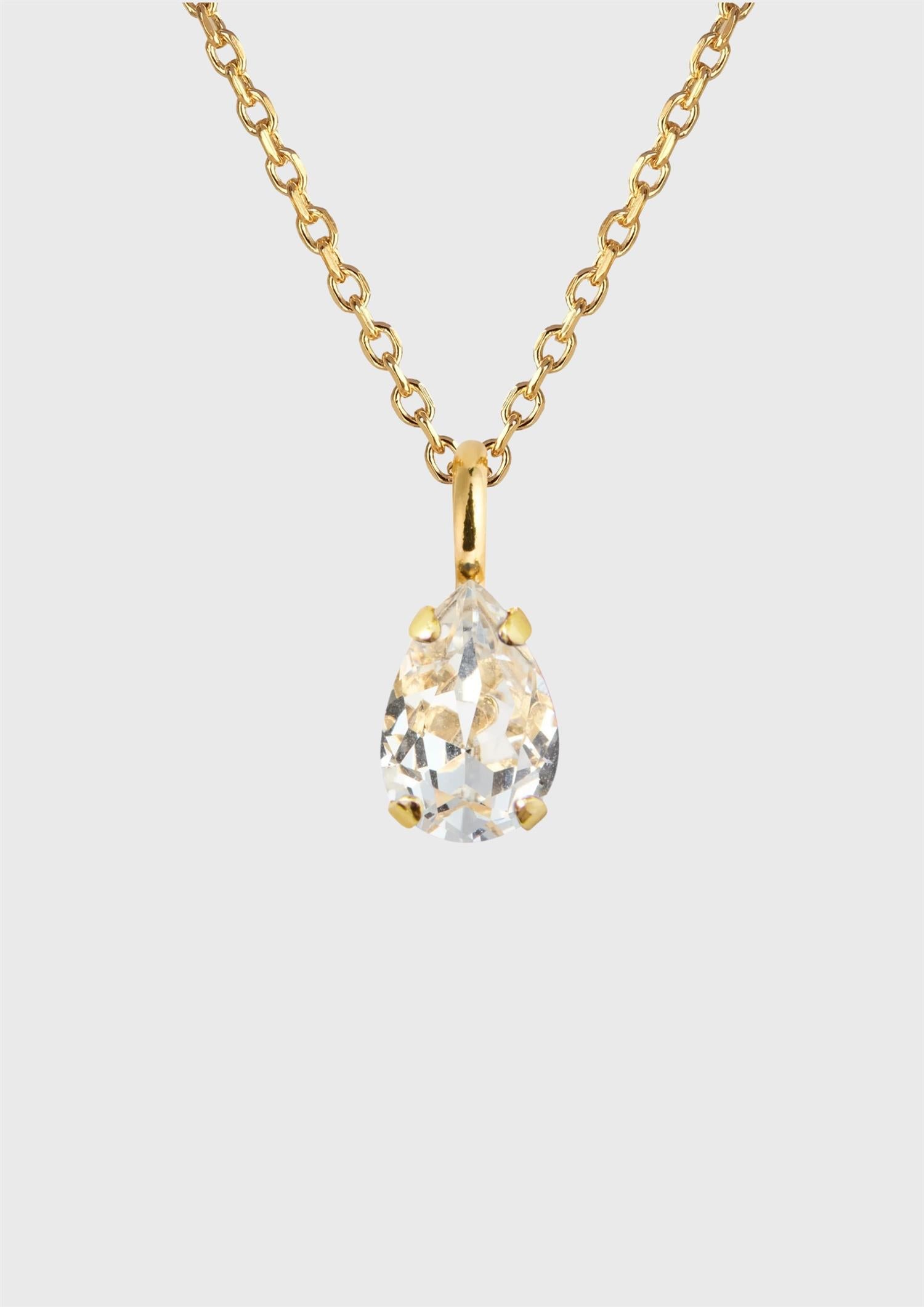 BESKRIVELSE: Amelia Necklace er designet for å løfte ethvert antrekk. Den dråpeformede krystallen tilfører et glitrende uttrykk som føles både tidløst og elegant. Vakker alene, eller lagvis med andre smykker for en mer personlig stil.