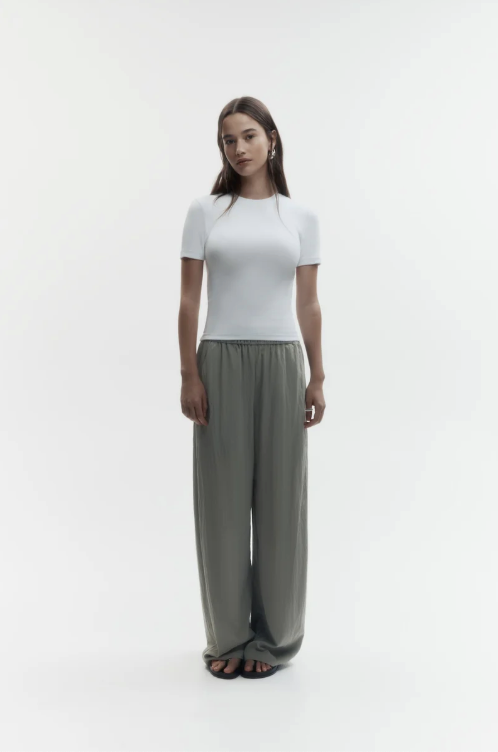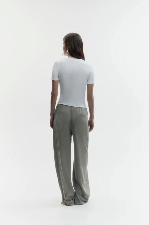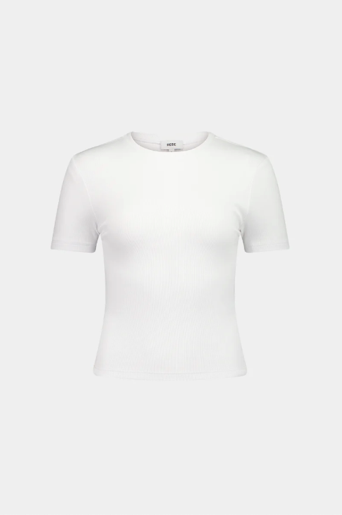 BESKRIVELSE: Vår ribbede T-skjorte er laget av en myk bomull-elastanblanding, og er designet for en tettsittende passform med rund hals og korte ermer.