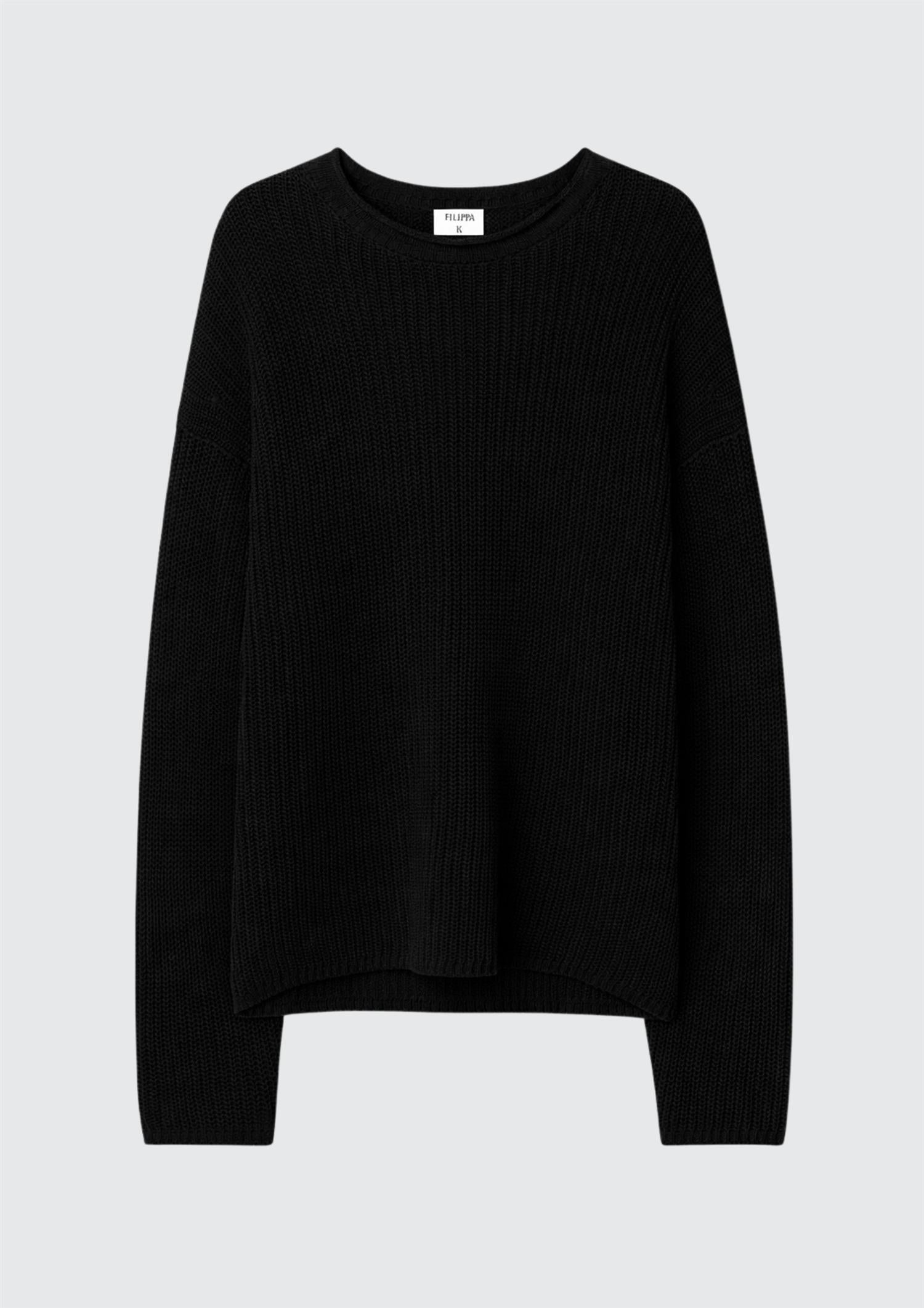BESKRIVELSE: En superkult ribbestrikket genser som er laget i en blanding av lin og økologisk bomull. Den er designet med en oversized passform, droppede skuldre og lengde til hoften.