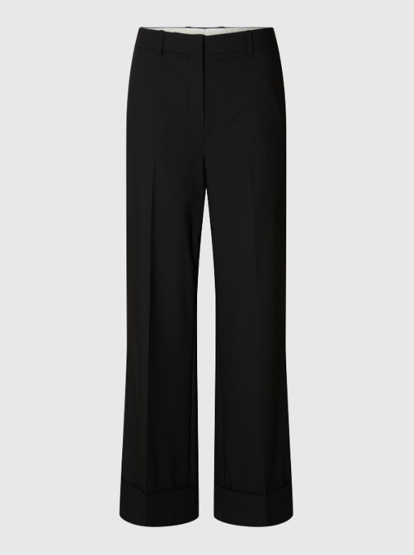 BESKRIVELSE: Gi utvalget ditt av figursøm et løft med disse dressbuksene i vid passform. Silhuetten gir den en illusjon av en lengre og slankere fasong, og pressfolden gir den en klassisk, figursydd look. Bruk den som en del av en todelt dress med vår matchende oversized blazer, eller style den med en stripete skjorte og lave hæler