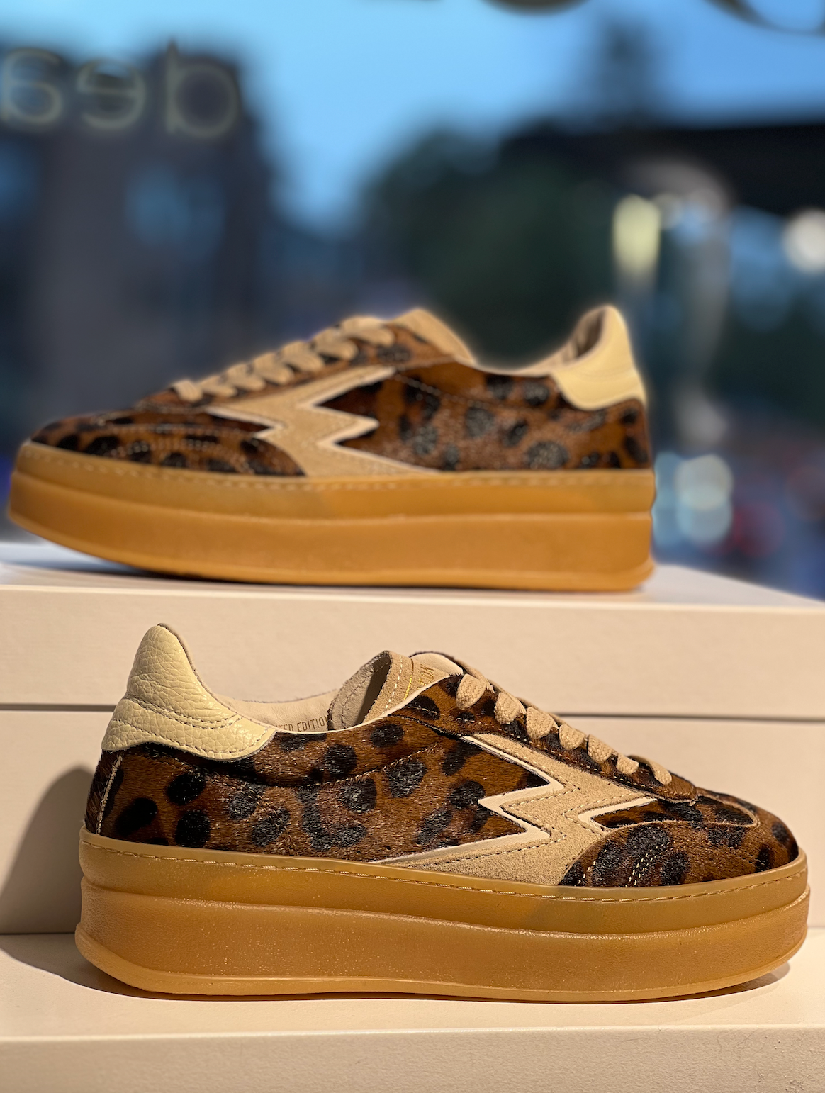 Beskrivelse: Helt rå sneakers fra Moa Concept! Fantastisk Leopard print i pony hår med platå såle. Myke lyse gummisåler. Dette er skoen som virkelig hever antrekket, samtidig som de gir deg komfort og solide kvaliteter.