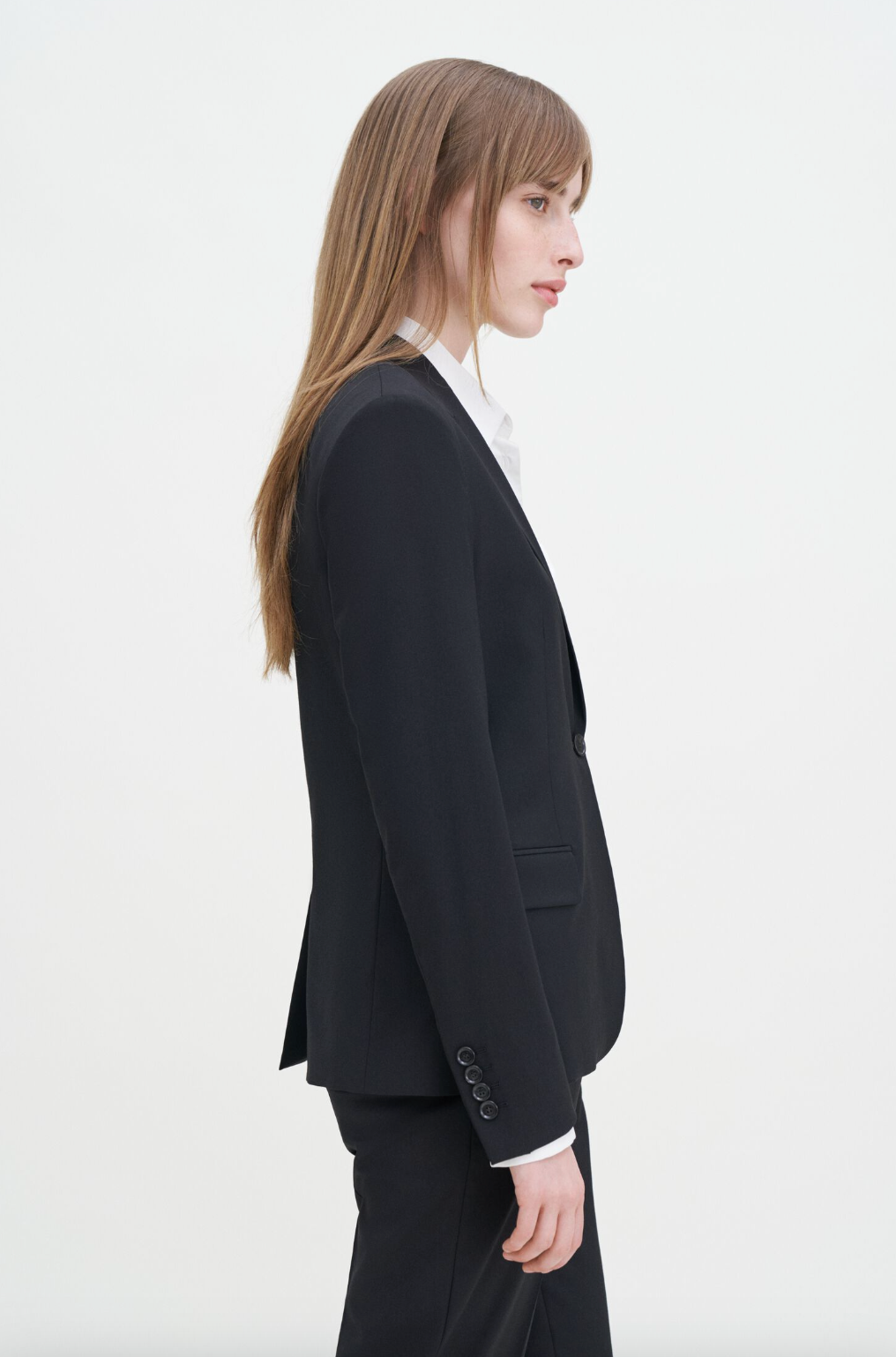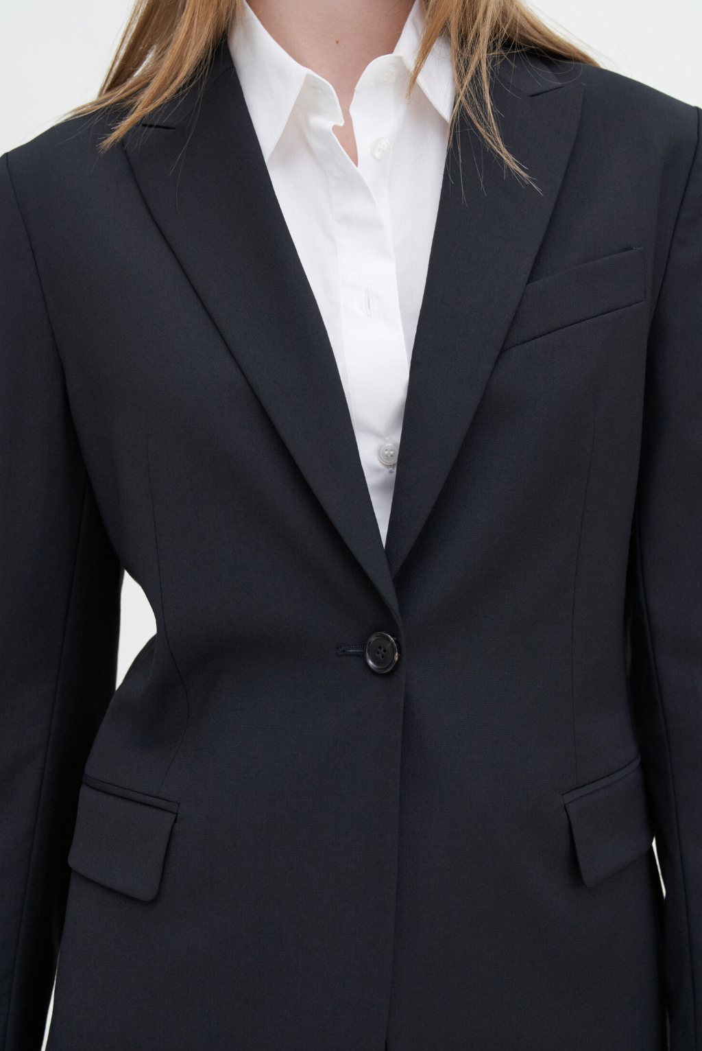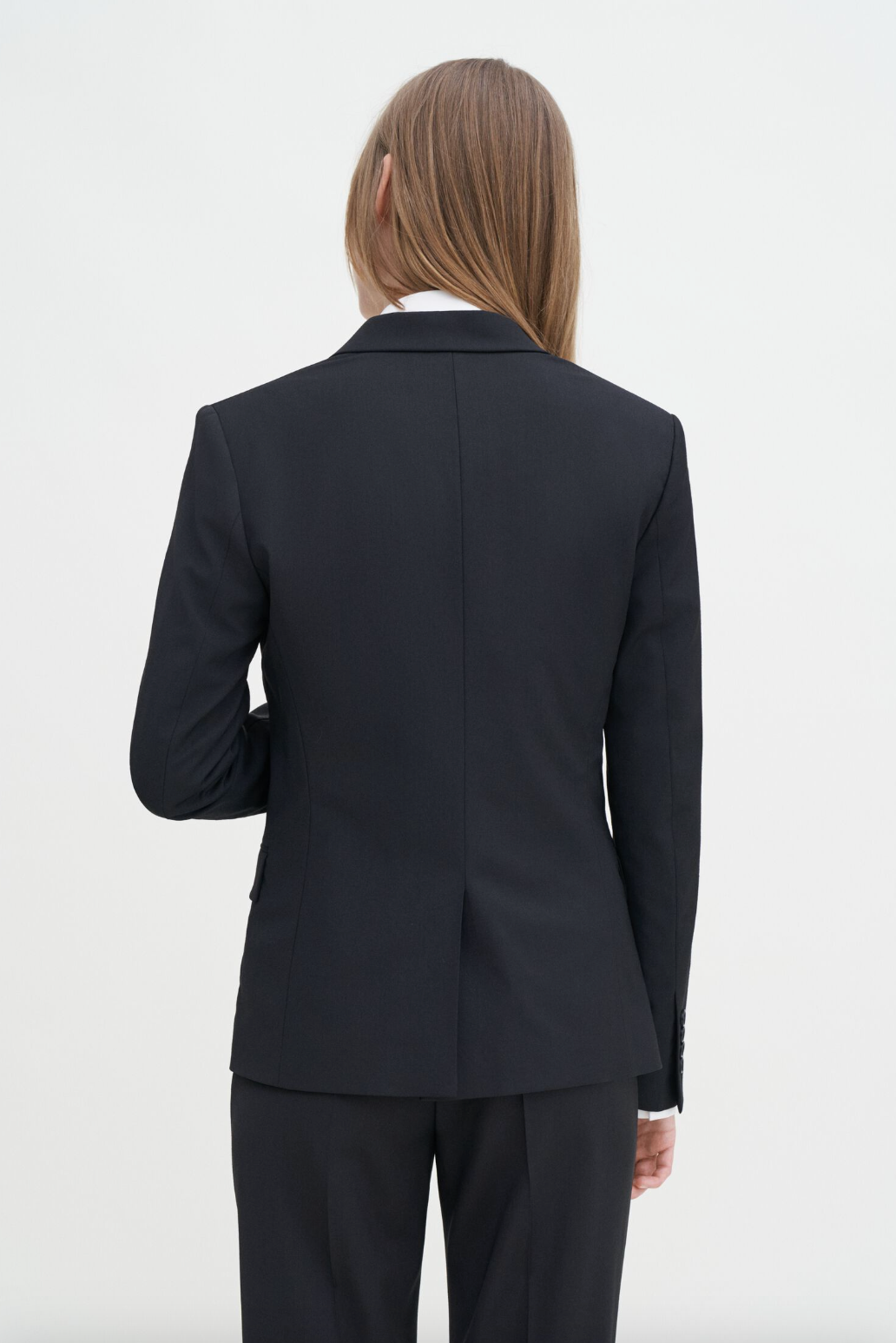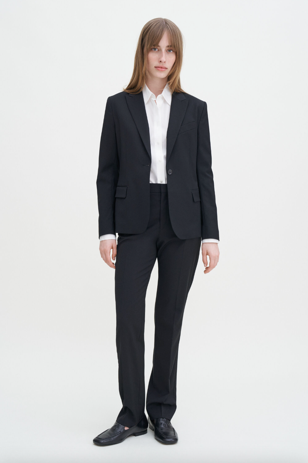 Beskrivelse: Sasha Cool Wool Blazer har en normal passform som er litt mer tilpasset i midjen. Det enkeltspente designet er skreddersydd i en ullblanding med stretch og med klassiske detaljer. Bruk den med Emma Cropped Cool Wool eller Emma Cool Wool Trousers for en hel dresslook.