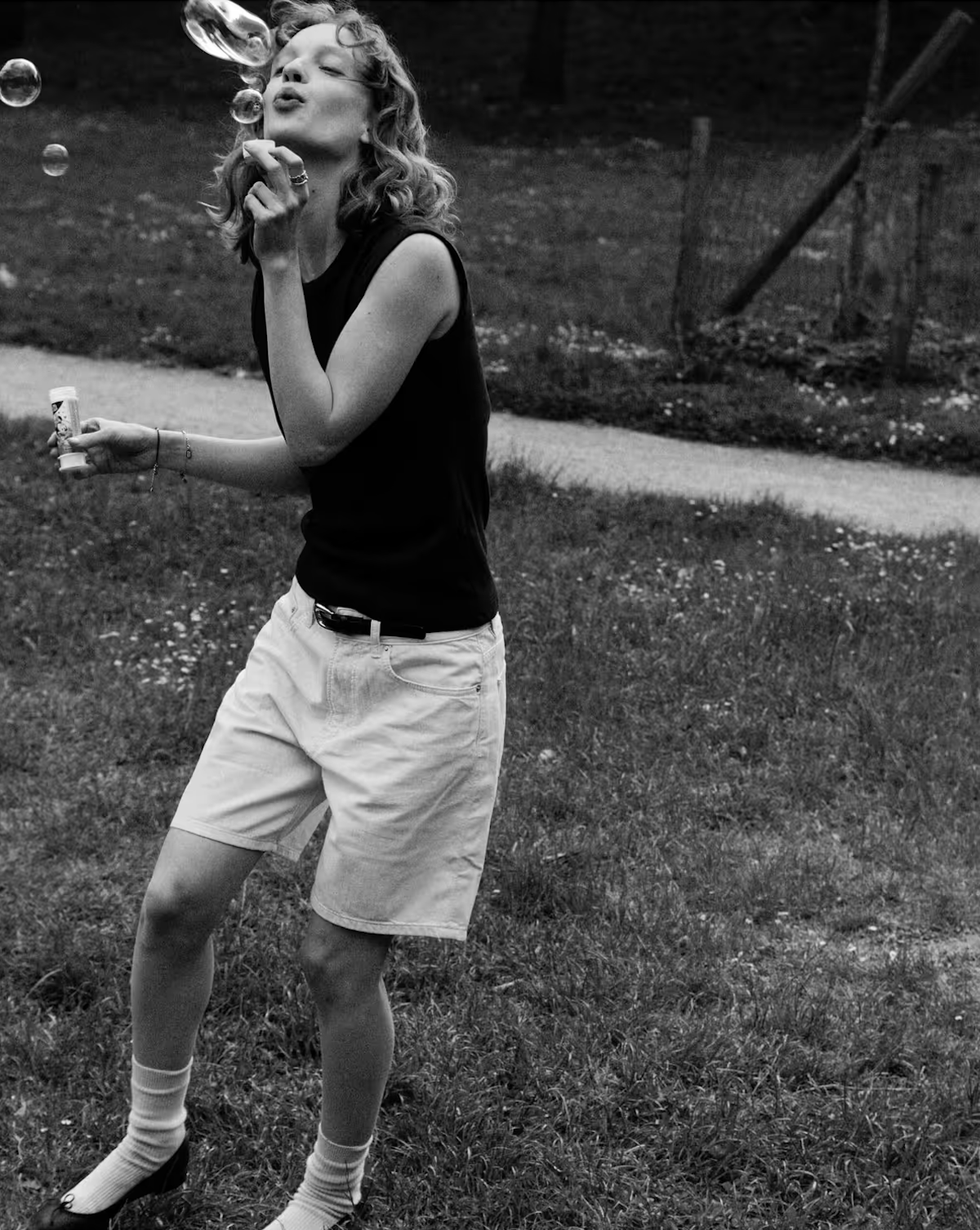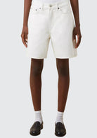Beskrivelse: Belem Short er en denim inspirert av Belem Jeans, men i en kortere lengde som ender over kneet. Den tilbyr en moteriktig og komfortabel løs passform med midt midje, fem lommer og en tilpasset topp med drapert fall og fallende skritt.