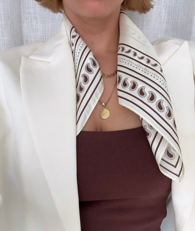 BESKRIVELSE: Paisley Scarf fra Le Scarf er et nydelig silkeskjef med unikt mønster som vil sette prikken over i´en på ethvert antrekk. Knyt det rundt halsen, rundt hårstrikken eller på veska for et moteriktig og stilfult uttrykk.