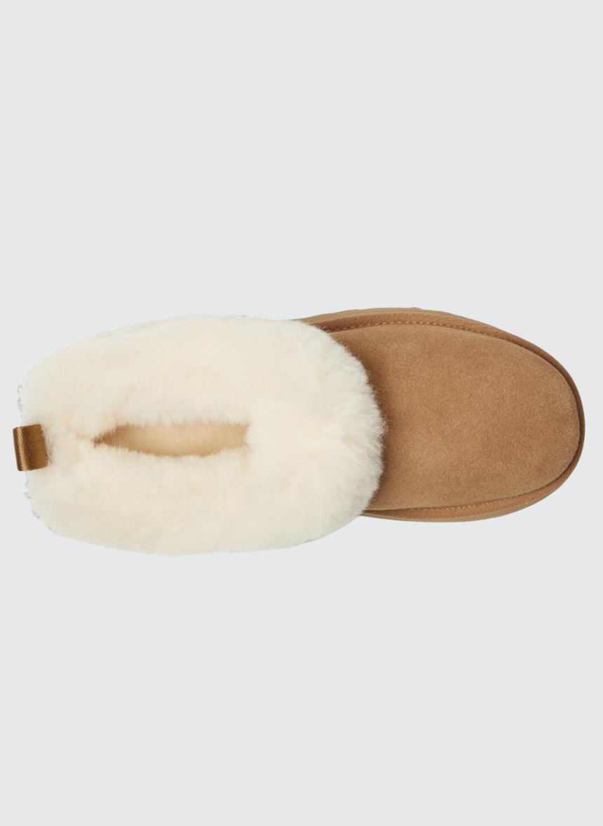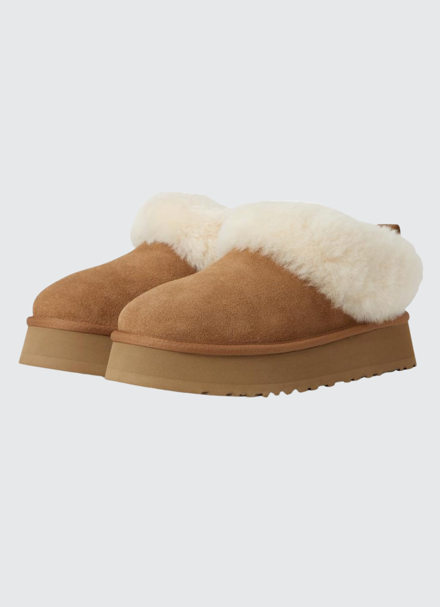 Beskrivelse: Tazzelle har en myk overdel i semsket skinn, foret med UGGs signatur UGGplush™ ullblanding som holder føttene varme og komfortable gjennom hele dagen. Den har en forhøyet plattformsåle som gir ekstra høyde og et trendy uttrykk, samtidig som den er lett og fleksibel.