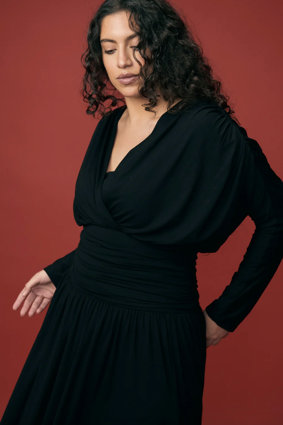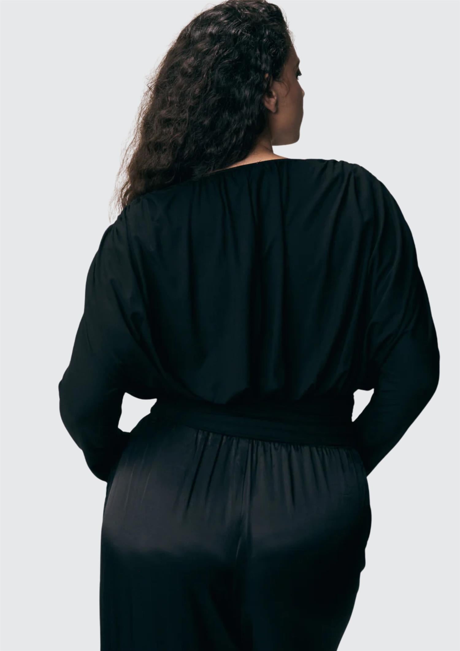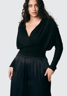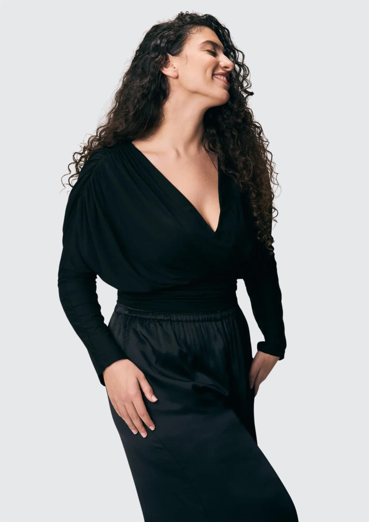 BESKRIVELSE: VIVEH Salvia er en sofistikert topp laget av VIVEH´s signaturstoff Ecovero, som er et viskosejersey som gir en flatterende passform. Den har lange ermer med en avslappet silhuett over skuldrene og en smal midje som fremhever figuren. Salvia kan styles på to måter, enten med en moderne høy hals, eller med en V-hals for et mer glamorøst uttrykk.