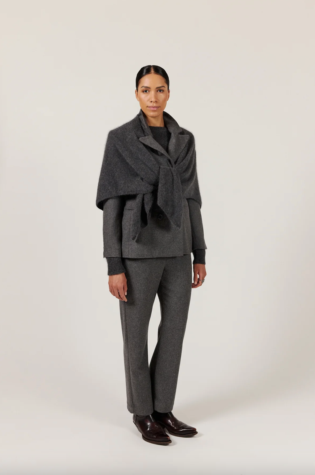 Beskrivelse: Sanne er en omsluttende cardigan i 100 % ultramyk vaskebjørnull, designet som en kappe for en avslappet, luksuriøs passform. Den har litt ribber foran og små ribbekanter, noe som gir en subtil tekstur til den moderne, sofistikerte silhuetten.