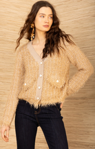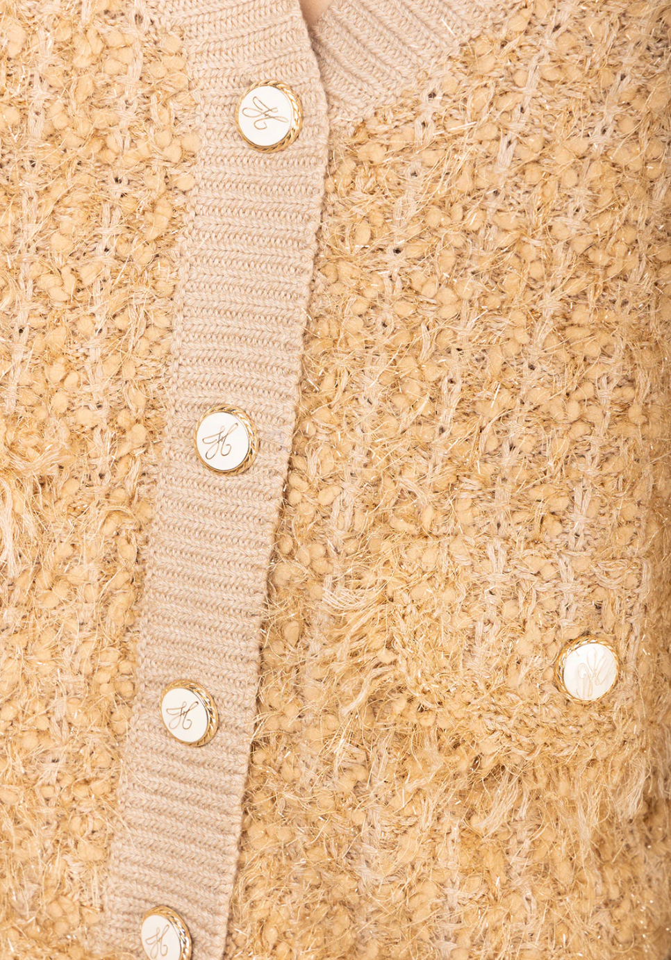 Beskrivelse: Cardiganen har knapper foran, lange ermer og praktiske lommer på forsiden. Den er laget i myk melange bouclé og har en lengde som går til hoften, perfekt for lag-på-lag-styling.