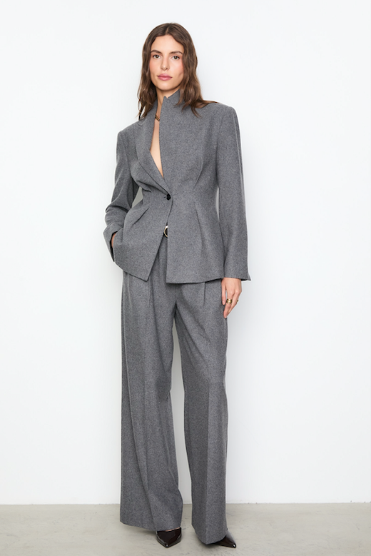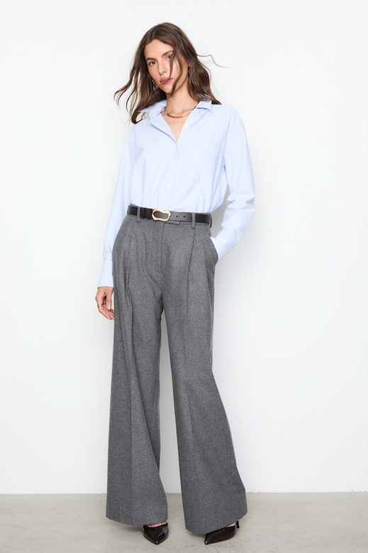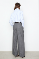 Beskrivelse: Ava Trouser er en elegant og skreddersydd dressbukse med sofistikerte legg foran som gir en klassisk og stilren silhuett. Buksen har høyt liv som fremhever midjen og vide ben for en moderne, komfortabel passform. Den har 5 cm ekstra stoff i kanten, slik at lengden enkelt kan justeres etter ønske. Perfekt for både formelle og uformelle anledninger, og den matcher sømløst med vår nye Ennia Flannel Blazer for et komplett og polert dressuttrykk.