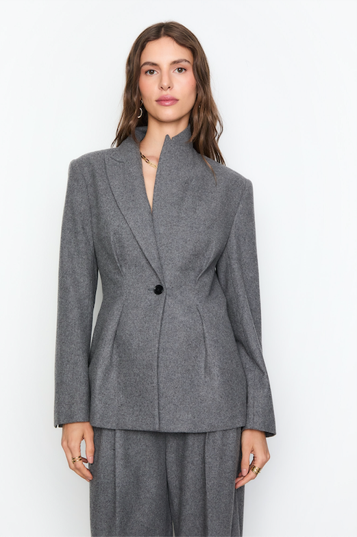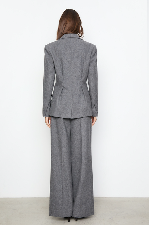 Beskrivelse: Ennia Flannel Blazer er en blazer i ullblanding med legg ved midjen for en mer innsvinget silhuett. Enkelspent med spiss krage. Passer perfekt sammen med vår nye modell Ava Flannel Trouser.