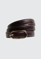 Beskrivelse: Business Belt fra Jim Rickey. Dette beltet i ekte skinn med metalldetaljer gir et delikat preg, perfekt for å løfte både business- og minimalistisk utseende med tidløs eleganse.