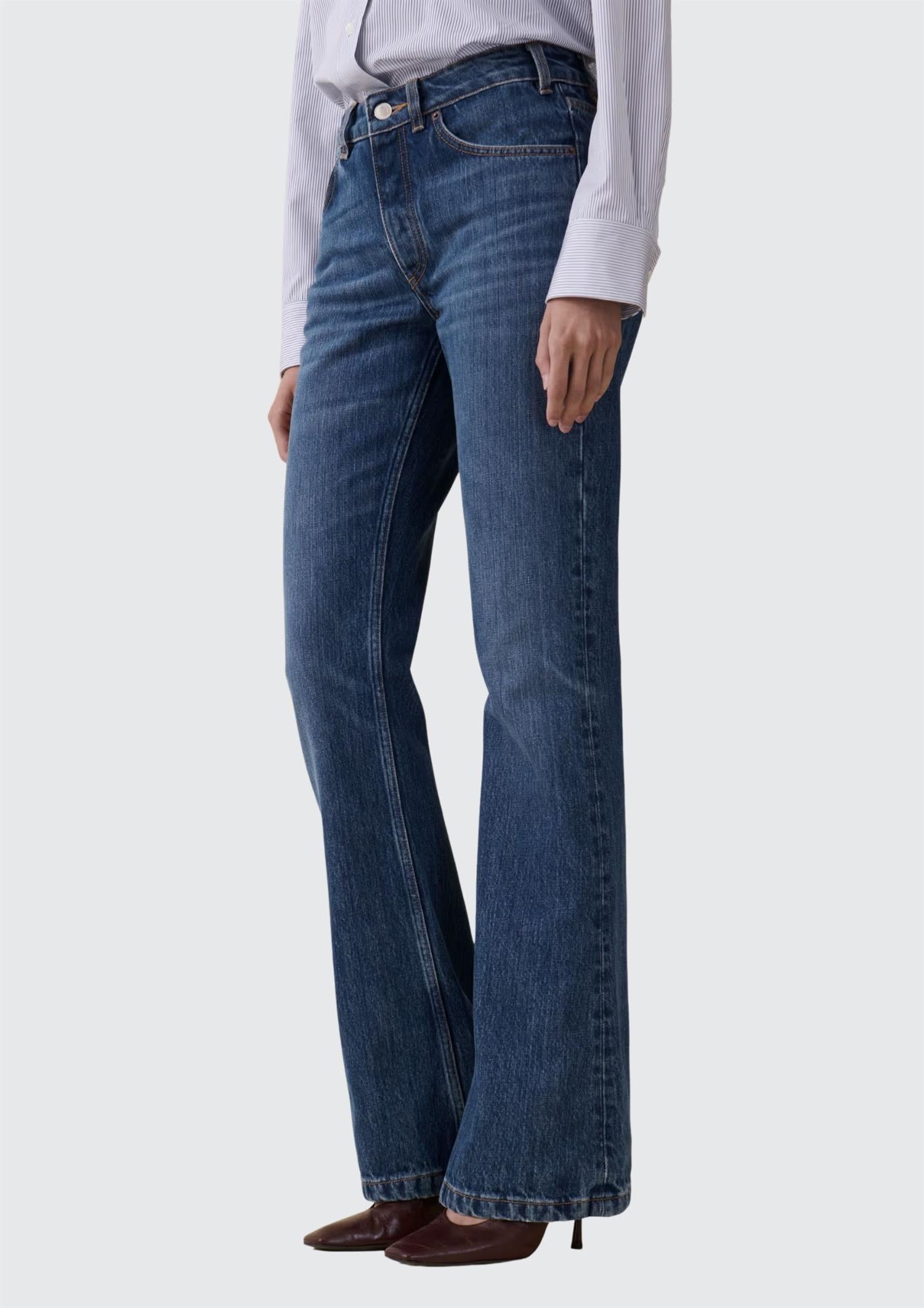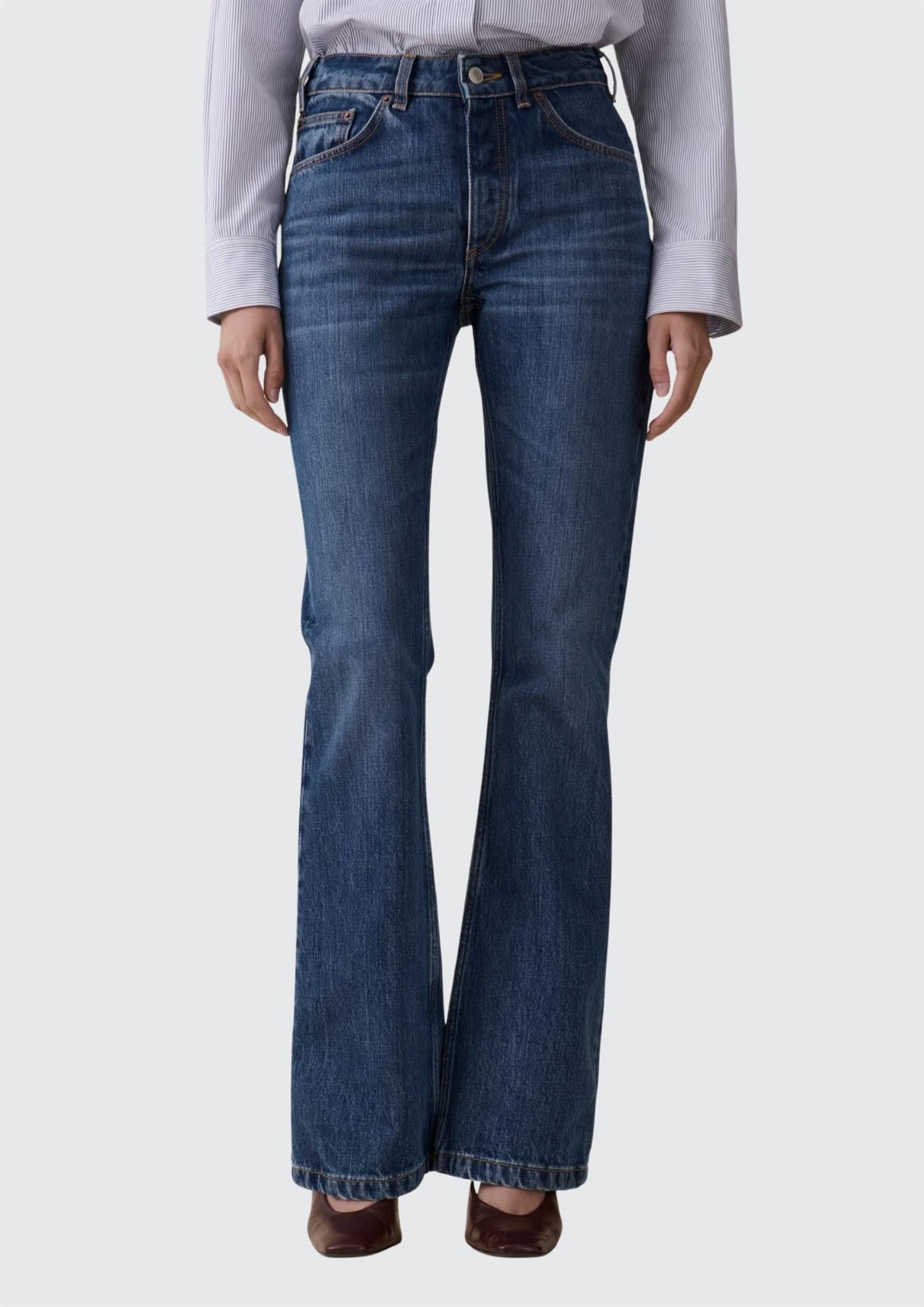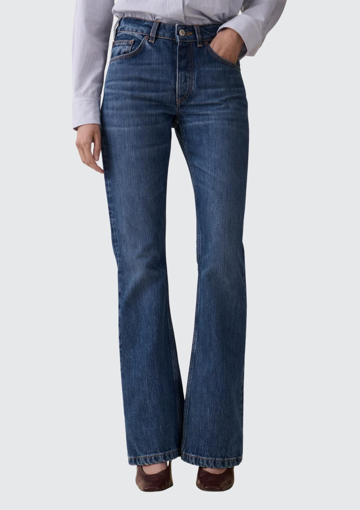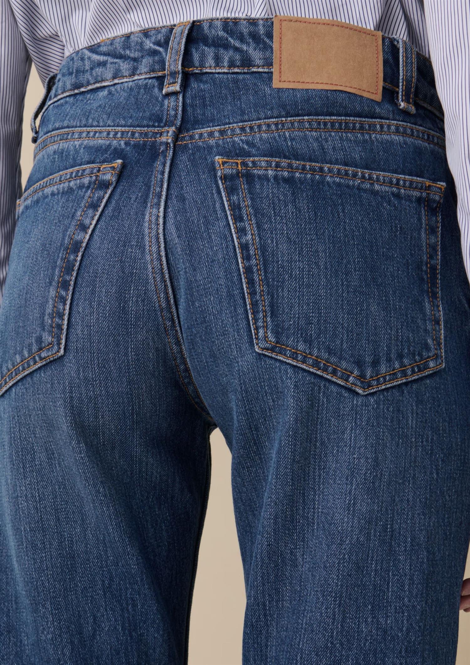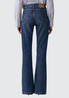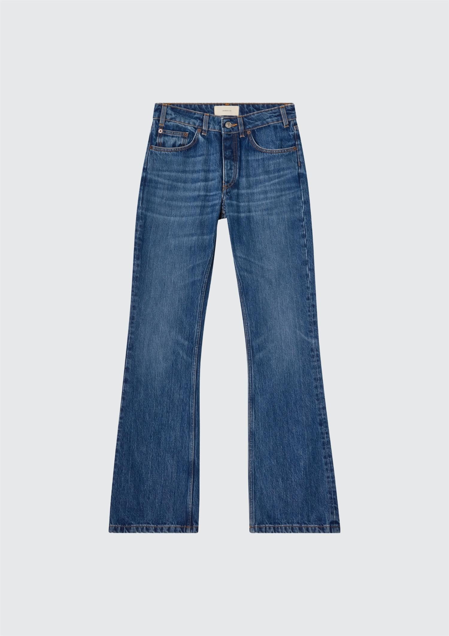 Beskrivelse: Moda fra Jeanerica er en elegant og tidløs jeansmodell i mellomblå vask. Jeansen er middels høy på livet og har en smal passform fra hoftene og ned til knærne, før den svinger ut i en subtil flare nederst. Klassisk 5-lommemodell med knappelukking.