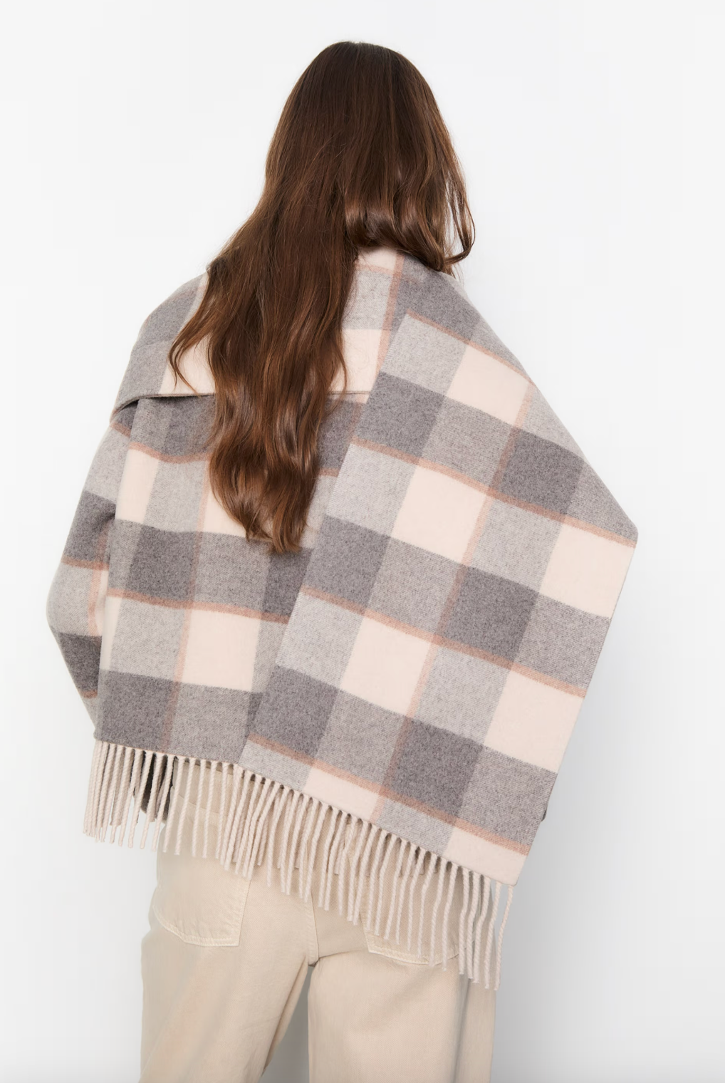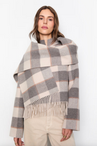 Beskrivelse: Esme-skjerfet er et bredt, dobbeltsidig skjerf i ullblanding som gir både varme og stil. Det er avsluttet med frynser for et klassisk preg, og er designet for å passe perfekt sammen med vår Edith-jakke, som har det samme karakteristiske rutemønsteret.