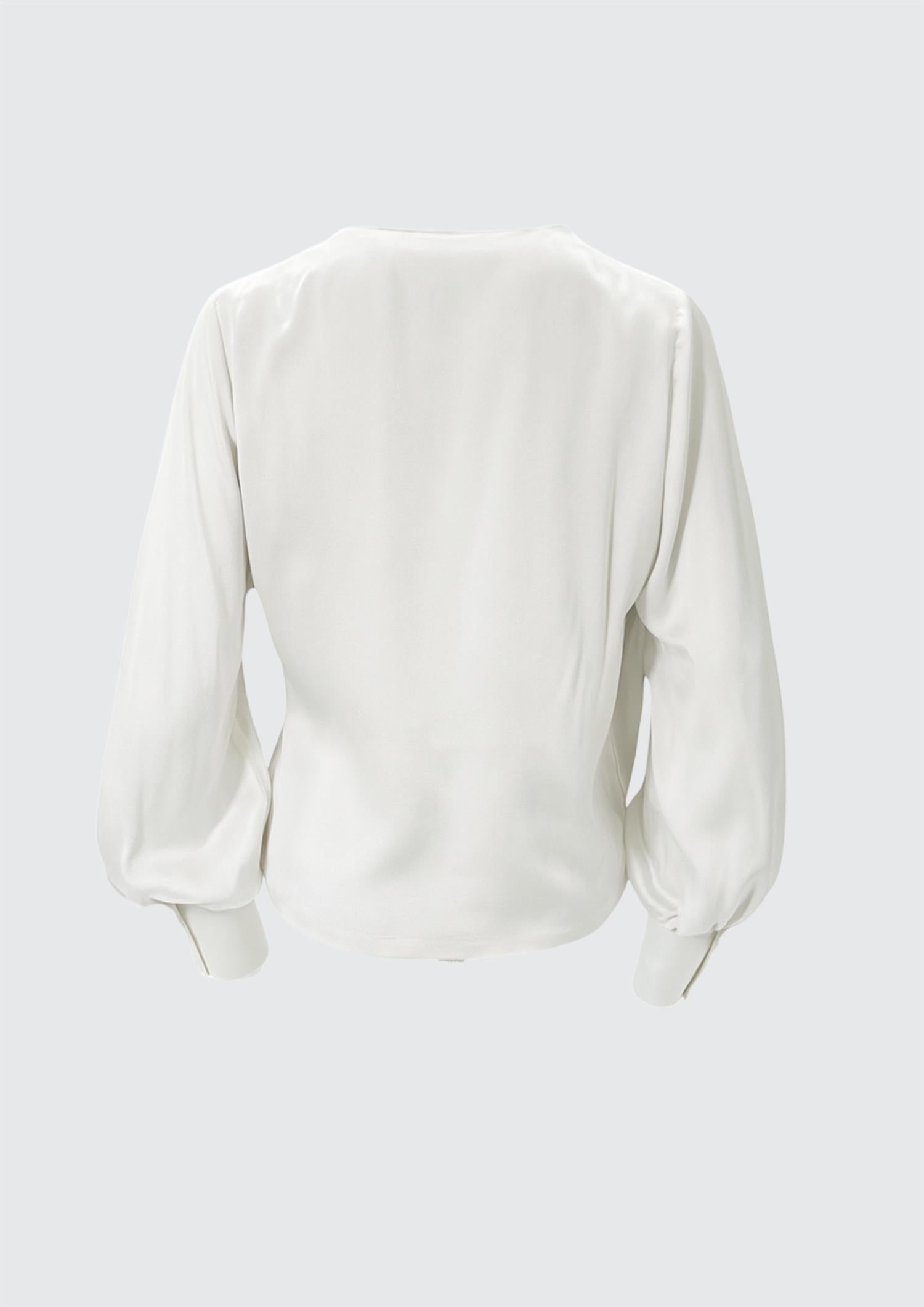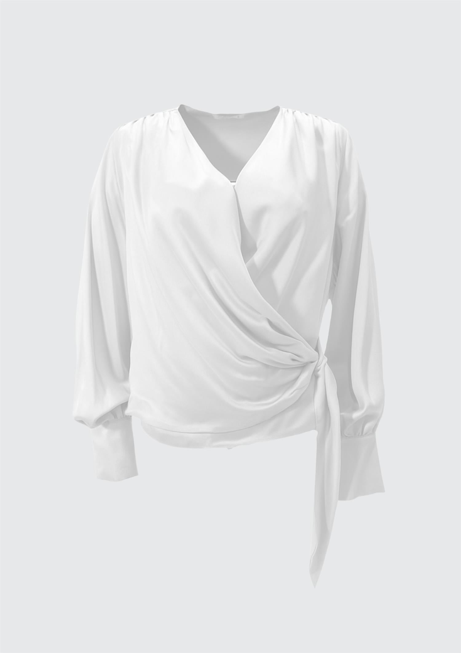 BESKRIVELSE: Anais silkebluse fra norske Amuse. En nydelig omslagsbluse i sandvasket silke. Med denne finishen får blusen en matt og eksklusiv look. Blusen har en hempe i siden for å feste omslaget i. Den er festet på innsiden, så du trenger ikke bekymre deg for at den åpner seg.
