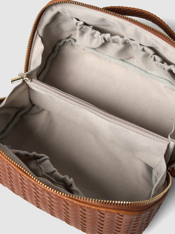 BESKRIVELSE: Remi Small Cosmetics Case kombinerer praktisk bruk med eleganse. Med en asymmetrisk glidelåslukking, en liten elegant bæreløkke og god plass til sminke og skjønnhetsartikler, holder den alt organisert samtidig som den gir et raffinert preg til rutinen din.