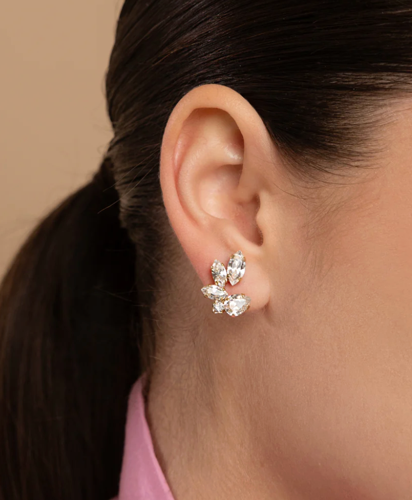 BESKRIVELSE: Små, men dristige – Clare-øredobbene gir seriøs glans med sine krystallklare steiner. Perfekte for å løfte hverdagslooken eller legge til et glitrende preg på et mer pyntet antrekk. Dette er dine øyeblikkelige humørløfter, uansett hva du har på deg.
