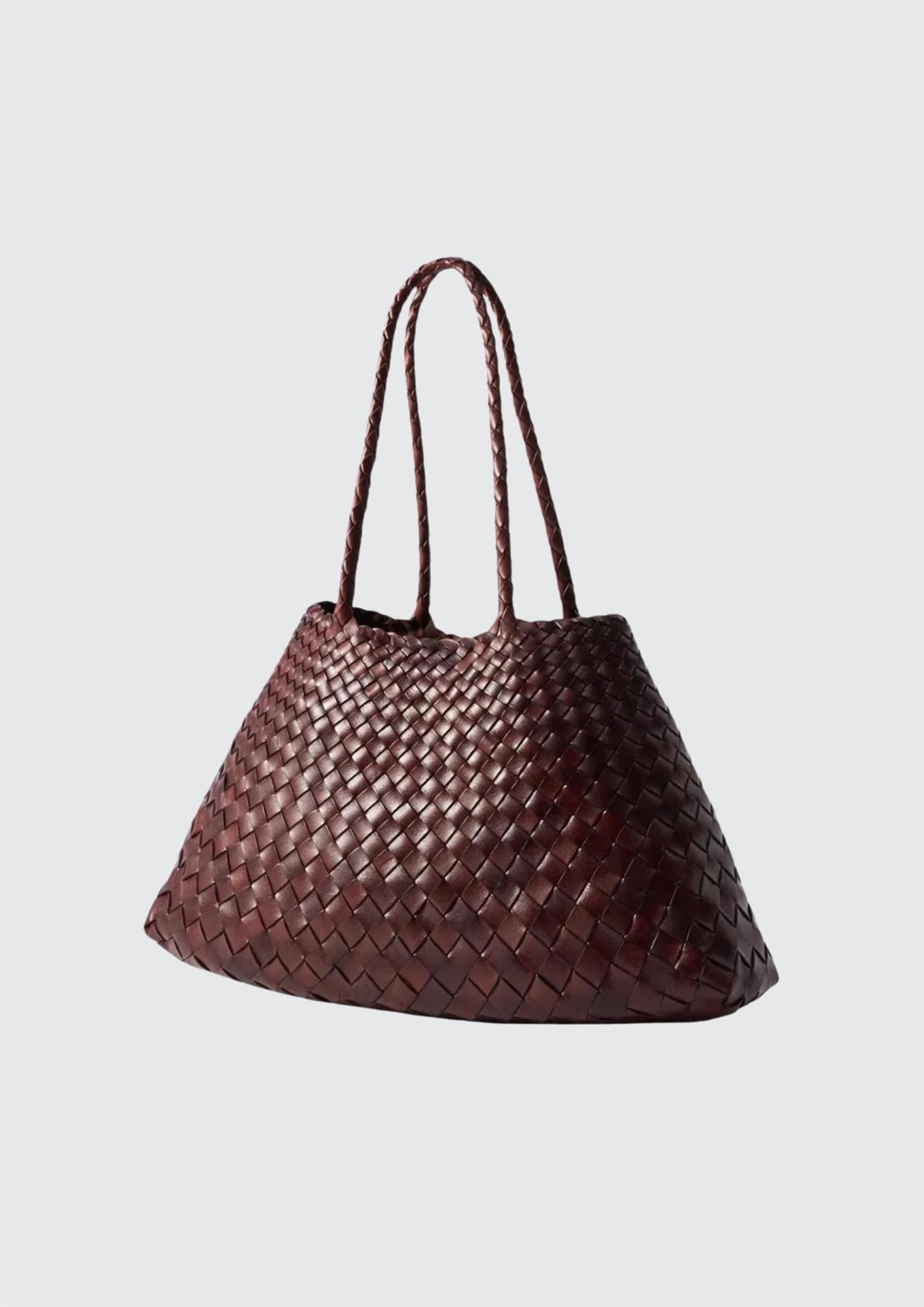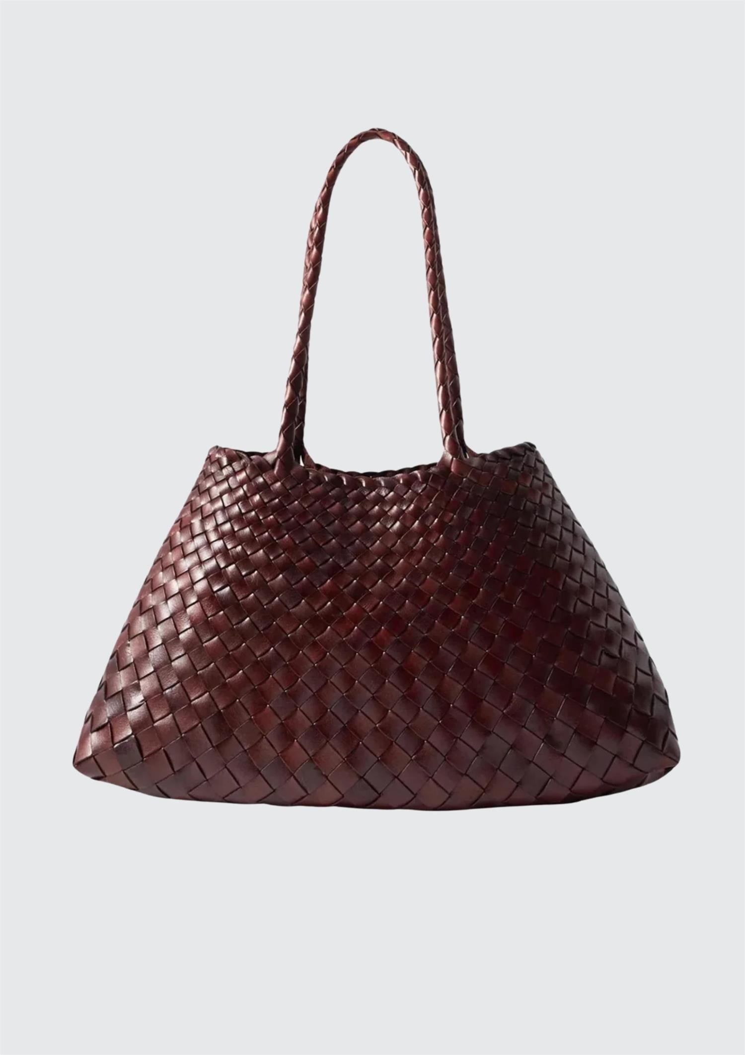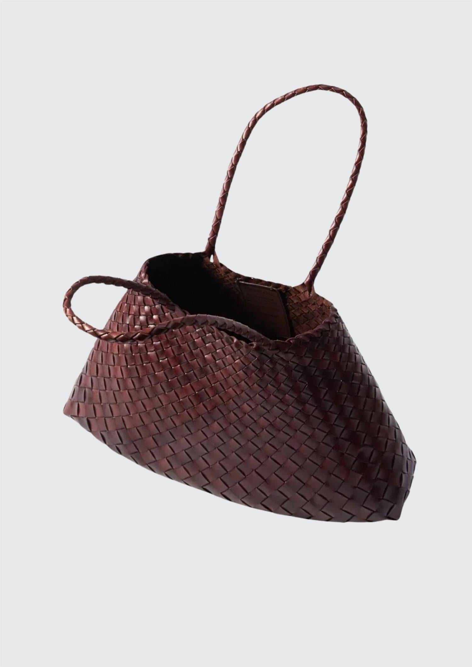 BESKRIVELSE: Santa Croce-vesken er laget av uregelmessige lærvevde stropper som smalner av mot bremmen, noe som skaper en praktisk, men elegant form som er perfekt for å løpe rundt i byen – og som tar antrekket ditt fra dag til kveld. Santa Croce er tro mot tradisjonelle kurvflettingsteknikker, kommer ufôret og har en åpen topp.