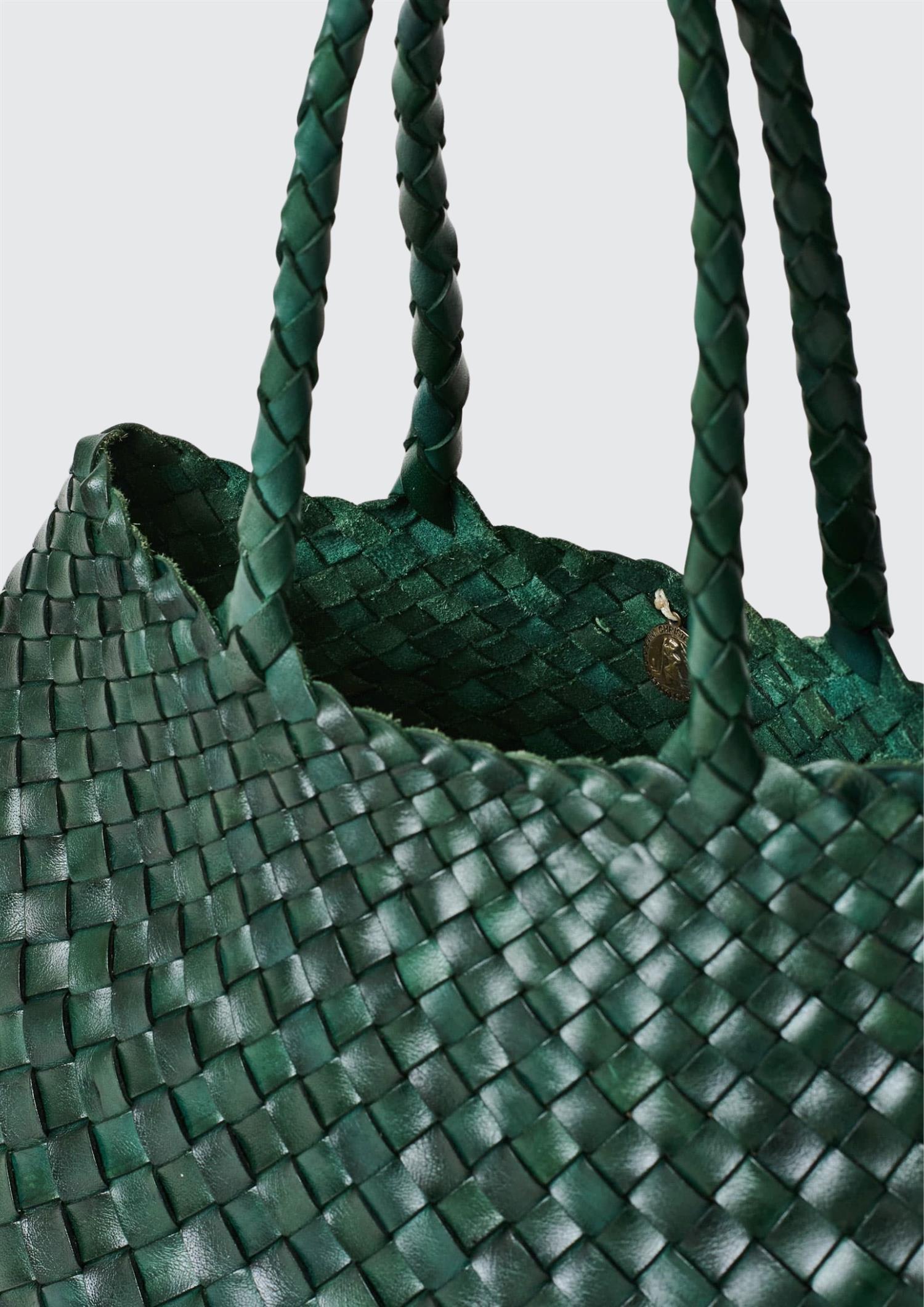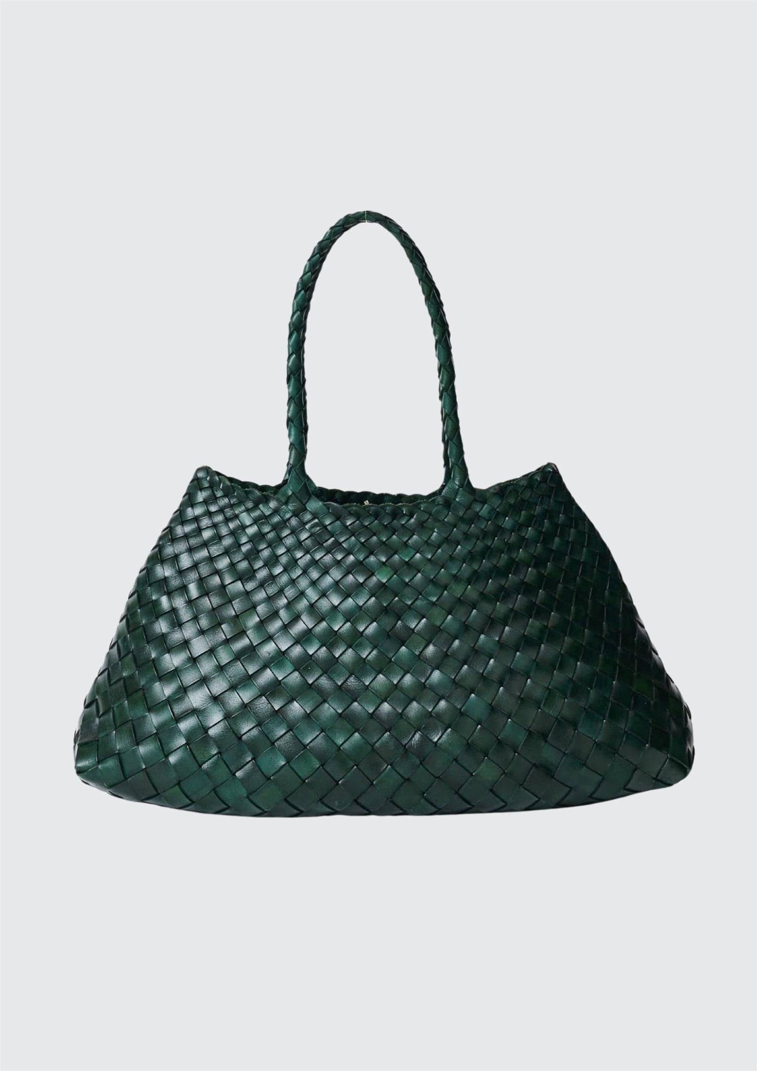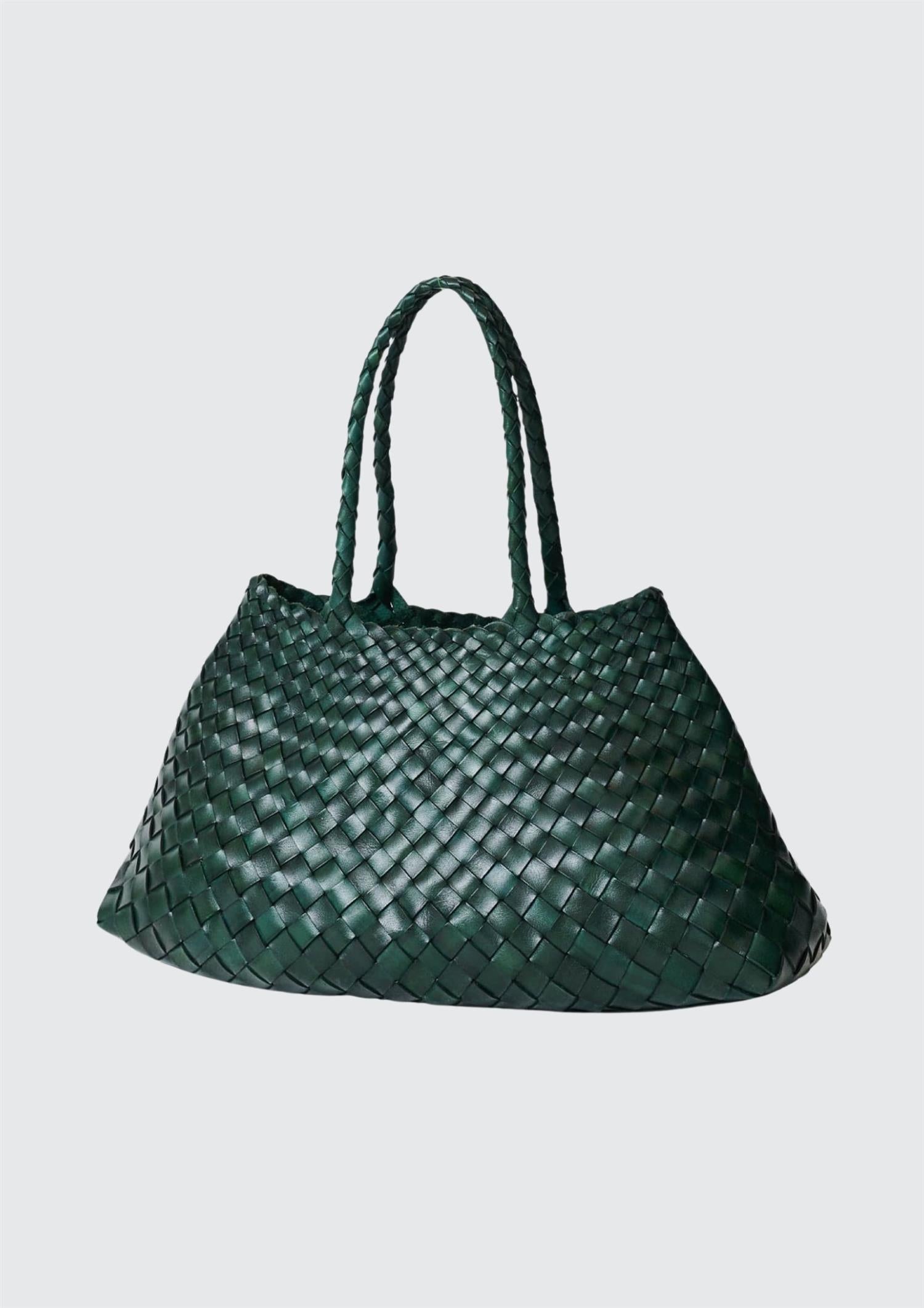 BESKRIVELSE: Santa Croce-vesken er laget av uregelmessige lærvevde stropper som smalner av mot bremmen, noe som skaper en praktisk, men elegant form som er perfekt for å løpe rundt i byen – og som tar antrekket ditt fra dag til kveld. Santa Croce er tro mot tradisjonelle kurvflettingsteknikker, kommer ufôret og har en åpen topp.