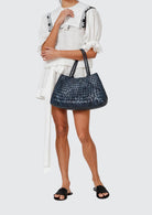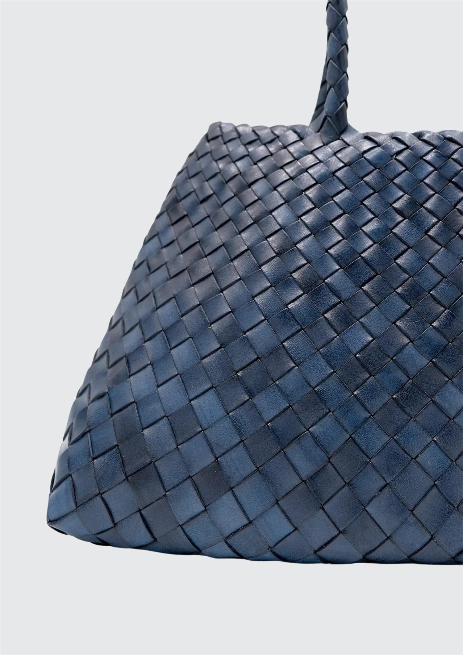 BESKRIVELSE: Santa Croce-vesken er laget av uregelmessige lærvevde stropper som smalner av mot bremmen, noe som skaper en praktisk, men elegant form som er perfekt for å løpe rundt i byen – og som tar antrekket ditt fra dag til kveld. Santa Croce er tro mot tradisjonelle kurvflettingsteknikker, kommer ufôret og har en åpen topp.