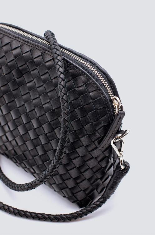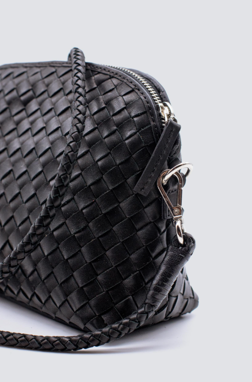 BESKRIVELSE: Chunky Fellini Pochette fra Dragon Diffusion gir den klassiske stråvesken en oppgradering som passer året rundt. Vesken er laget av mykt italiensk kuskinn, med glidelåslukking på toppen og bomullsfôr med praktiske lommer. Bruk den avtakbare skulderstroppen i skinn for å bære den over skulderen, eller fjern stroppen og bruk vesken som en clutch. Inne i hver veske er en påsydd antikk St. Christopher-medalje – en hyllest til de reisendes skytshelgen.