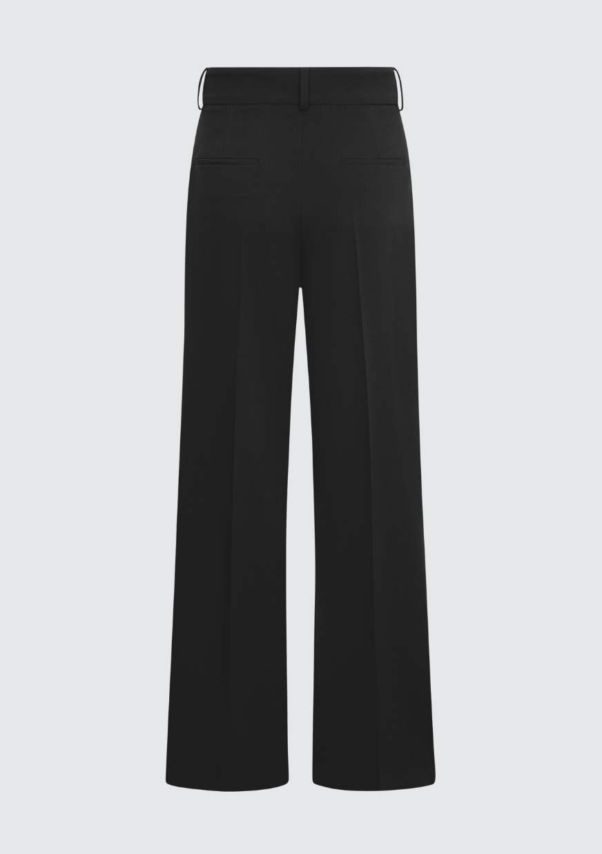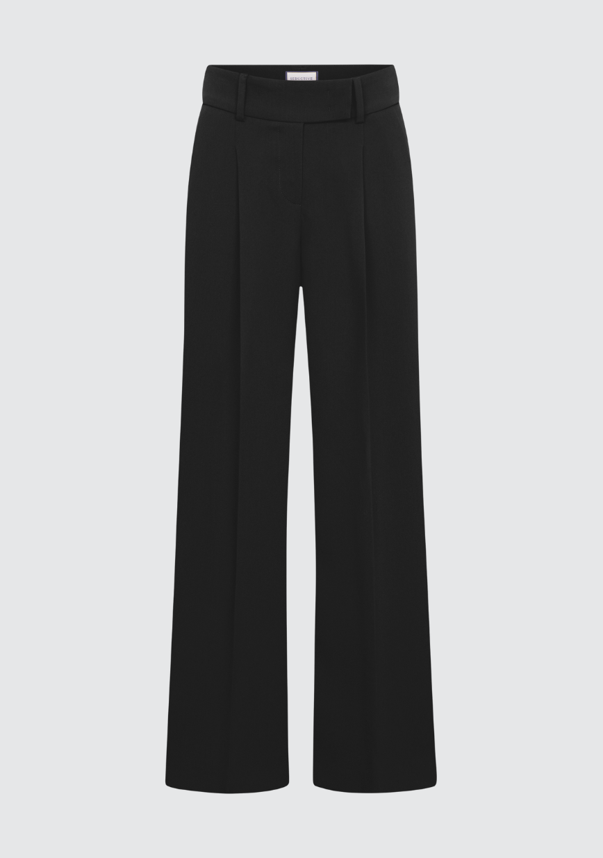 BESKRIVELSE: Chrissy fra Seductive er en elegant og tidløs buksemodell designet for deg som ønsker både komfort og raffinement i hverdagsgarderoben. Buksen har en høy midje med en bred linning som fremhever silhuetten på en flatterende måte, samtidig som de dype leggene foran gir et sofistikert og moderne uttrykk. Den vide benvidden skaper en lett, flytende fasong som gir en avslappet, men eksklusiv look.