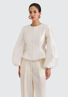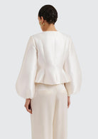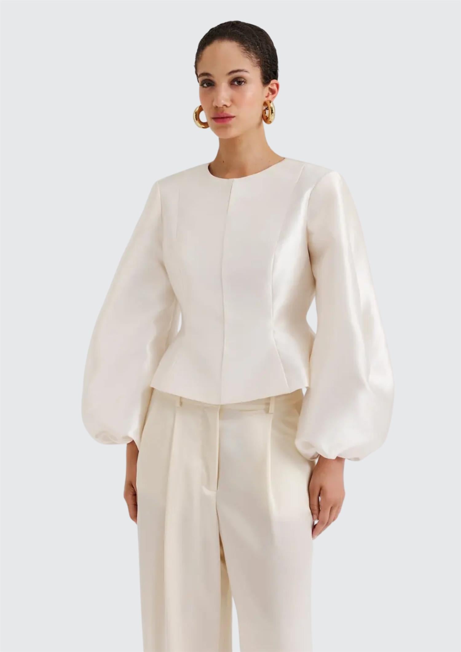 BESKRIVELSE: Vendela Balloon Sleeve Blouse fra Malina er en nydelig statement-bluse i sort med en elegant, shiny finish. Den har rund hals, voluminøse ermer med strikk nederst og en flatterende passform med innsving i midjen. Blusen lukkes med skjulte hemper foran for et rent uttrykk. Et sofistikert plagg som passer perfekt til penere anledninger - style den gjerne med et skjørt eller dressbukser for en komplett look.