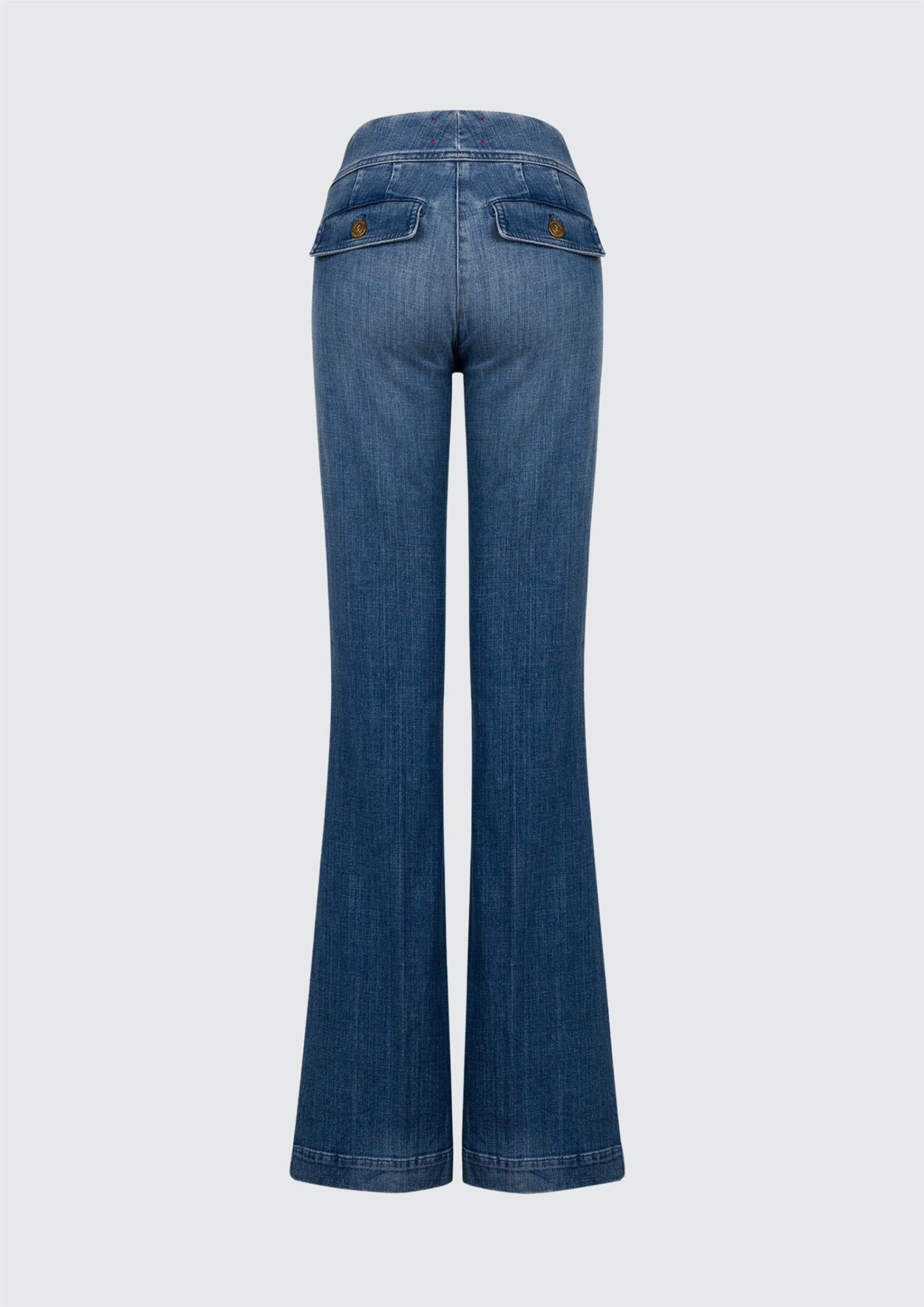 BESKRIVELSE: Seafarer Anais Pocket Flared Jeans er en klassisk utsvingt jeans med høy midje og store frontlommer. Laget i myk denim med stretch for en flatterende og behagelig passform. Den mørkeblå vasken gir et tidløst uttrykk som passer til både hverdag og kveld.