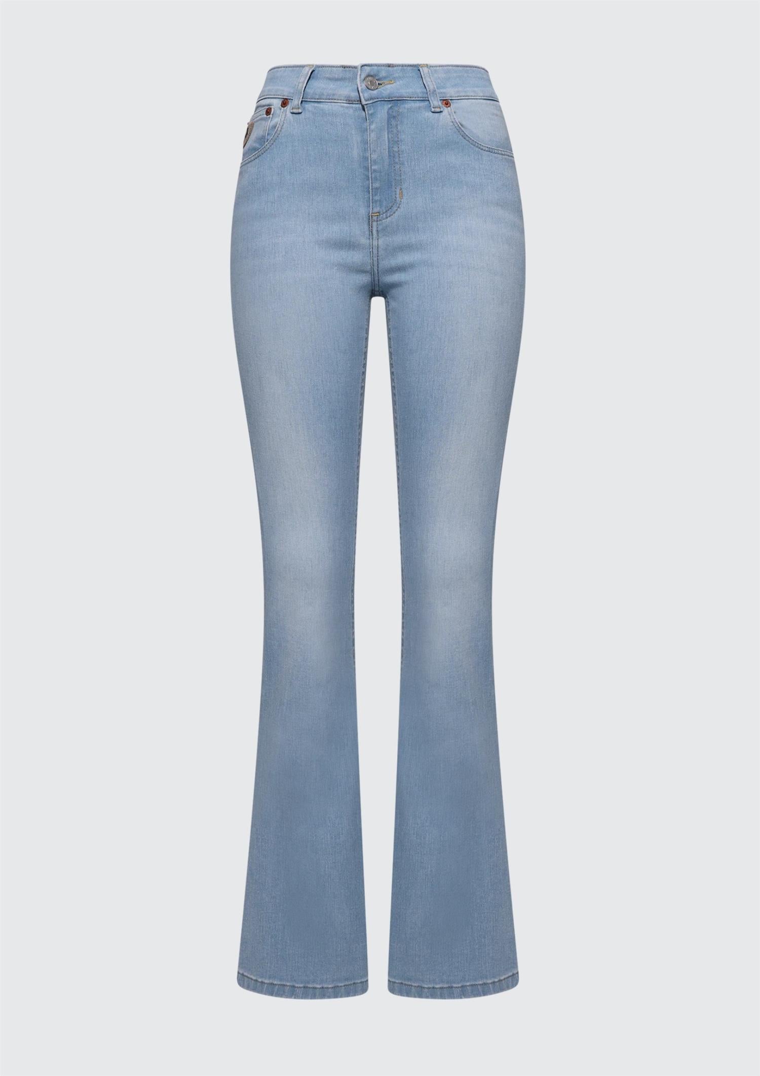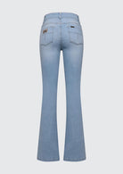 BESKRIVELSE: Denne modellen er høy på livet og med god stretch. Buksen er super myk og i den perfekte lyse denimvaksen. Baklommene sitter høyt, noe som gir en flatterende look. Ettersittende helt ned til knærne, der den går ut i sleng .