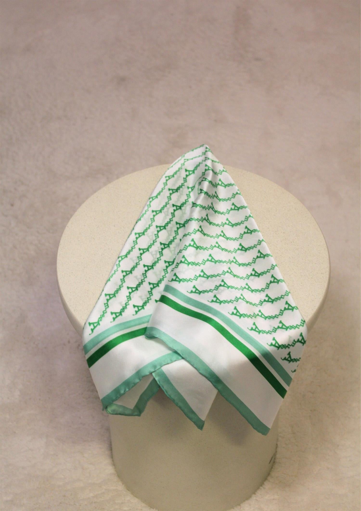 Beskrivelse: Silkeskjerf fra Amuse med Amuse tekst