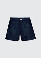 Janette er den korte versjonen av den ikoniske Delphine-denimen med fire påsydde lommer og glidelåslukking.
