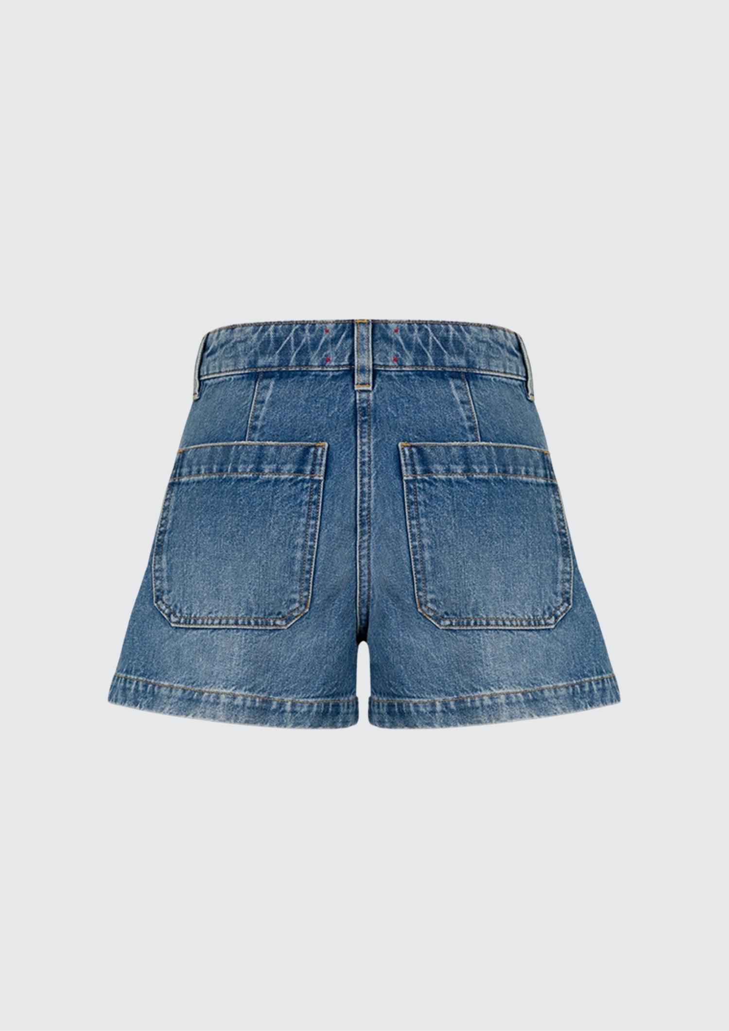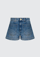 Janette er den korte versjonen av den ikoniske Delphine-denimen med fire påsydde lommer og glidelåslukking.
