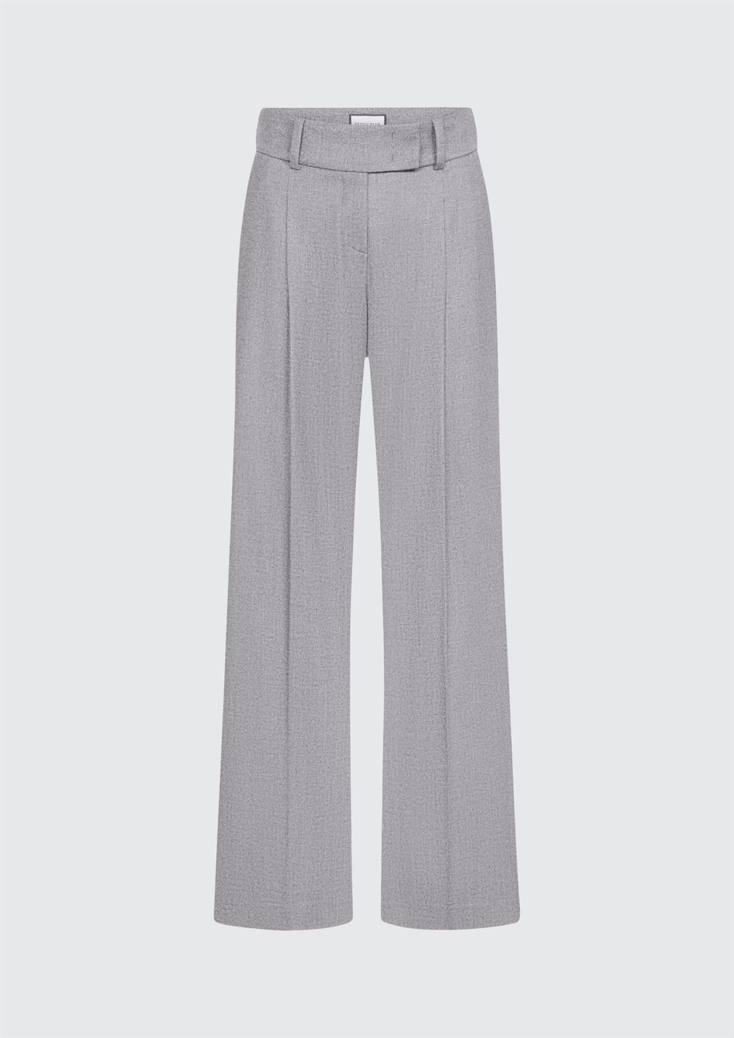 BESKRIVELSE: Chrissy-flanellbuksene med vide ben fra SEDUCTIVE tilbyr en moderne silhuett med sitt løse og elegante snitt. Laget av et stoff med et luksuriøst kasjmirpreg, kombinerer de absolutt komfort og raffinement. Belteløkkene gir perfekt justering av midjen. Perfekt med en finjustert genser gjemt inn for å fremheve flyten i linjen deres.