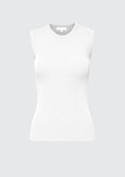 BESKRIVELSE: En ermeløs ribbet topp med en figursydd silhuett, brede stropper og rund hals. Den perfekte lille toppen til skjørt eller bukser. Toppen har en litt tykkere kvalitet noe som gjør den til en "penere" singlet perfekt til jobb eller fest.