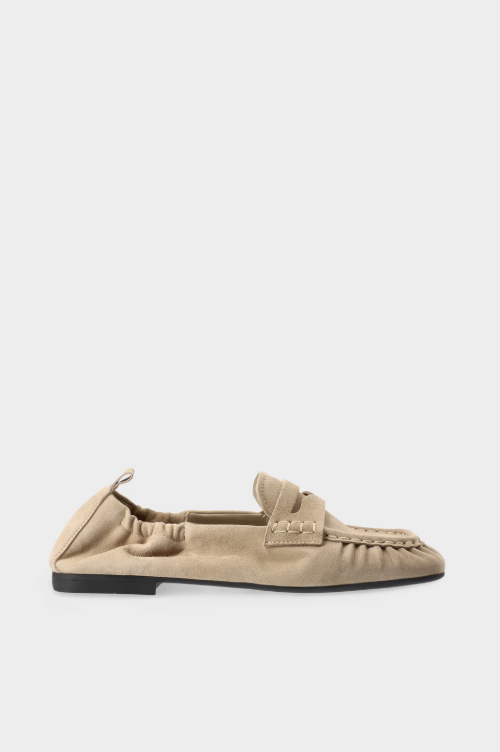 BESKRIVELSE: Myke loafers i semsket skinn med mokkasinfølelse. Den elegante slip-on-silhuetten med elastiske sidepaneler og en diskret trekkflik sikrer komfortabel bruk. Lærdetaljer og subtile rynker i sømmen gir et snev av eleganse. Den litt firkantede tåen og den flate sålen med en subtil blokkhæl fullfører det minimalistiske og stilige designet perfekt.